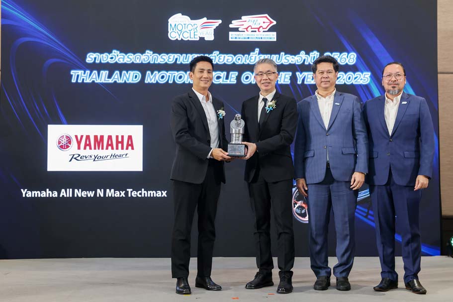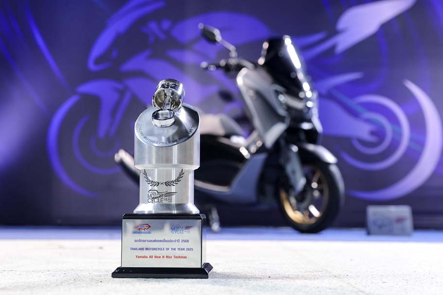 All New YAMAHA NMAX TECH MAX คว้ารางวัล “Thailand Motorcycle of The Year 2025” จัดโดยสมาคมผู้สื่อข่าวรถยนต์และรถจักรยานยนต์ไทย เพื่อมอบรางวัลให้กับรถจักรยานยนต์ ที่มีความโดดเด่นด้านดีไซน์ สมรรถนะ และเทคโนโลยีที่ครองใจผู้ใช้ทั่วประเทศ