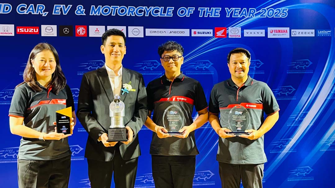 นายอุกฤษณ์ ภาควิวรรธ รองผู้จัดการใหญ่ด้านวางแผนการค้าและการตลาด บริษัท ไทยยามาฮ่ามอเตอร์ จำกัด รับรางวัล Thailand Motorcycle of The Year 2025 จาก ดร.ณัฐพล รังสิตพล ปลัดกระทรวงอุตสาหกรรม โดยมี นายสุรศักดิ์ จรินทร์ทอง นายกสมาคมผู้สื่อข่าวรถยนต์และรถจักรยานยนต์ไทย ร่วมแสดงความยินดีในพิธี