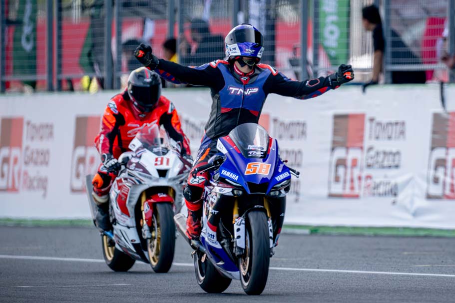 พระเอกหนุ่มชื่อดัง “โอม” ภวัต จิตต์สว่างดี ลงแข่งระดับอาชีพครั้งแรกในปีนี้ สังกัด ยามาฮ่า ทีเอ็นพี พีทีที ลูบริแคนท์ส ทีม ซึ่งสนามนี้เจองานหิน ต้องออกตัวจากท้ายแถวในกริด 23 แต่ไล่แซงคู่แข่งอย่างสุดมันส์ ทะยานบิดเข้าป้ายเป็นคันที่ 2 ด้ วยเวลารวม 18 นาที 22.866 วินาที คว้าโพเดียมแรกในชีวิต ในฐานะนักแข่งรถจักรยานยนต์ทางเรียบชิงแชมป์ประเทศไทย ในศึก NEXZTER BRIC Superbike Championship 2025 สนาม 4 (ตัดสินแชมป์ประจำปี) ที่ สนามช้าง อินเตอร์เนชั่นแนล เซอร์กิต จ.บุรีรัมย์