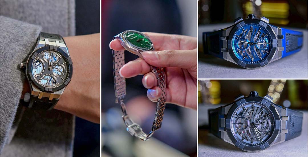 ในขณะเดียวกันก็นำเสนอส่วนประกอบในระดับต่างๆ ทำให้ช่องแสดงผลมีความลึกจึงช่วยเพิ่มความน่าดึงดูดใจได้ชัดเจนมากยิ่งขึ้น และอีกรุ่นคือAIKONIC Chronograph Skeleton 43 mm. ที่โดดเด่นด้วยดีไซน์หน้าปัดในแบบสเกเลตันผสมผสานไปกับกลไกโครโนกราฟมีให้เลือกด้วยกันสองสี ทั้งแบบโทนสีเทาดำ และโทนสีฟ้า ส่วนนาฬิกาอีกหนึ่งรุ่นที่เป็นไฮไลท์ของงานอย่างคอลเลคชั่นฉลองครบรอบ 50 ปี ที่มีชื่อว่า 1975 Legacy Day-Date Limited Edition 40 mm. จำนวนผลิตเพียง 500 เรือนเท่านั้น ถือว่าเป็นรุ่น ลิมิเต็ด เอดิชั่น ที่มาพร้อมหน้าปัดลาย Vagues du Jura แต่ในครั้งนี้ได้เลือกใช้เฉดสี Sapin Green อันโดดเด่น ซึ่งเป็นสีที่ได้รับแรงบันดาลใจจากต้นเฟอร์ (sapin ในภาษาฝรั่งเศส) ที่ประดับรายล้อมอยู่บนเนินเขา Saignelégier หน้าปัดที่อยู่ใต้กระจกแซฟไฟร์ จะดูดซับแสง ช่วยเน้นให้องค์ประกอบที่มีมิติละเอียดอ่อนของฉากสีเขียวชอุ่มดู โดดเด่นยิ่งขึ้น