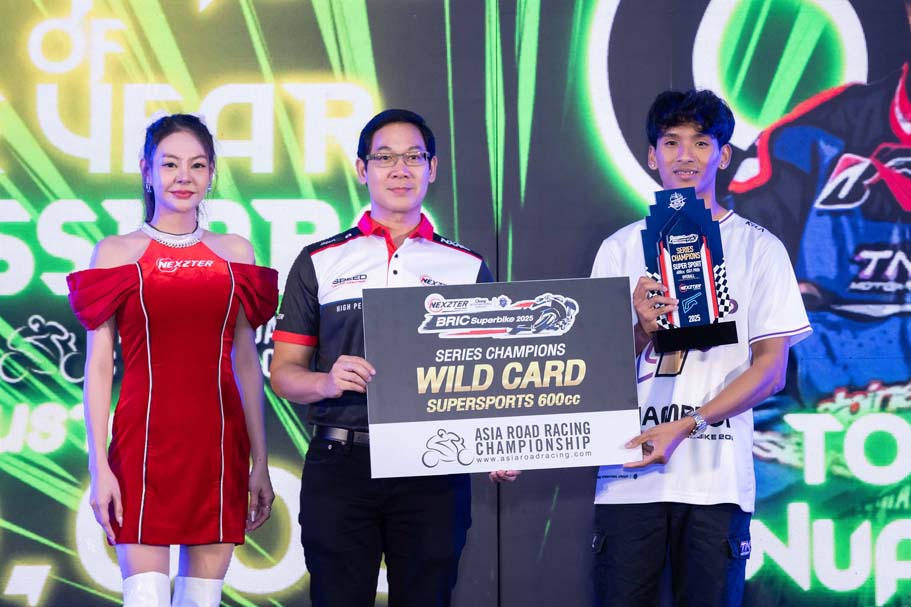 สนามช้าง อินเตอร์เนชั่นแนล เซอร์กิต จ.บุรีรัมย์ ปิดฉากฤดูกาลมอเตอร์สปอร์ตที่ยิ่งใหญ่ที่สุดของประเทศ ศึก เน็กซ์เตอร์ บีอาร์ไอซี ซูเปอร์ไบค์ แชมเปี้ยนชิพ 2025 ด้วยงานฉลองแชมป์ “CHAMPION DAY” เมื่อสุดสัปดาห์ที่ผานมา พร้อมมอบสิทธิ์ “ไวลด์การ์ด” (Wild Card) ให้แก่ แชมป์ประจำปีมากถึง 4 รุ่น เพื่อก้าวไปแข่งขันในรายการชิงแชมป์เอเชีย เอเชีย โรด เรซซิ่ง 2026 (ARRC)