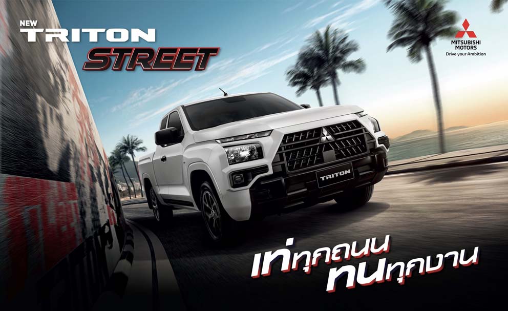 เสริมทัพด้วย “มิตซูบิชิ ไทรทัน สตรีท ใหม่” ภายใต้คอนเซปต์ “เท่บนถนน ทนทุกงาน” กระบะเมกะ แค็บ ตัวเตี้ยโฉมใหม่ เสริมลุคหล่อ ด้วยชุดตกแต่งกระจังหน้าดีไซน์สปอร์ต โฉบเฉี่ยว ที่มีสมรรถนะการขับขี่ที่ตอบสนองได้อย่างมั่นใจ ตอบโจทย์การใช้งานในทุกสภาพถนน พร้อมเสริมความมั่นใจกว่าด้วย ระบบเตือนการชนด้านหน้าตรง พร้อมระบบช่วยชะลอความเร็วและระบบตรวจจับคนเดินถนน (Forward Collision Mitigation System with Pedestrian Detection - FCM) ครบทั้งความเท่ และอัดแน่นด้วยสมรรถนะ ให้ความคุ้มค่าในหนึ่งเดียว