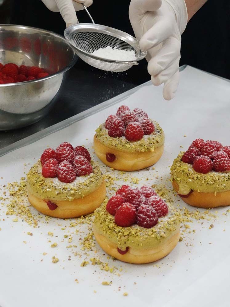 เชิญชวนเหล่าคนรักเบอร์รีมาลิ้มลองโดนัทสองรสชาติสุดเอกซ์คลูซีฟที่สร้างสรรค์อย่างพิถีพิถัน ไม่จะว่าเป็นรส Raspberry Pistachio มาพร้อมรสชาติหลากหลายมิติ ท็อปปิ้งด้วยครีมและถั่วพิสตาชิโอหอมมันกรุบกรอบ ผสานกับไส้ราสป์เบอร์รี ชูความหอมหวานอันเป็นเอกลักษณ์ ปิดท้ายความอร่อยด้วยราสป์เบอร์รีลูกโต จาก Driscoll’s ต่อมาคือ รส Blueberry Cream Cheese โดดเด่นด้วยเทกซ์เจอร์ครีมชีสเนียนนุ่ม ครัมเบิ้ลกรุบกรอบหอมเนย บลูเบอร์รีสดจาก Driscoll’s และไส้บลูเบอร์รีสุดเข้มข้น รวมกันเป็นรสชาติเปรี้ยวอมหวานที่ลงตัวในทุกคำ