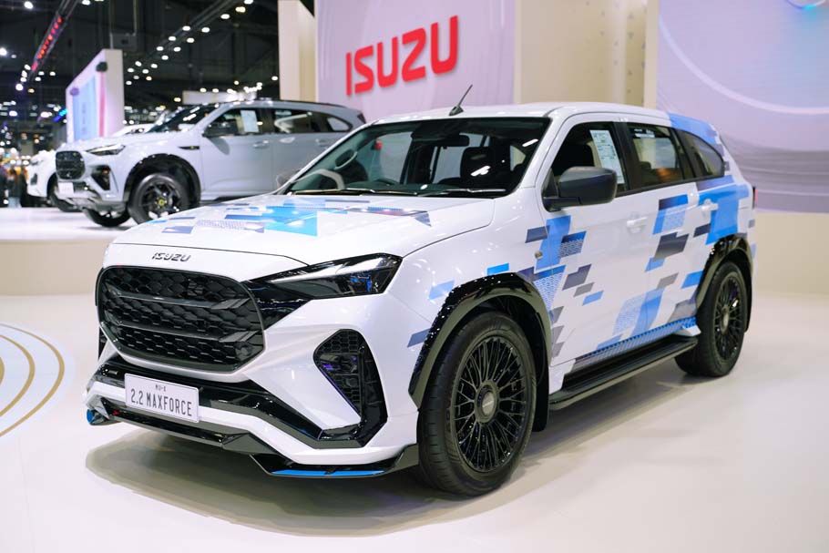 - MU-X “THE NEXT PEAK” รุ่น Active 2.2 Ddi MAXFORCE สีขาวมุกโดโลไมท์ (Dolomite White Pearl) ตกแต่งพิเศษด้วยคอนเซ็ปต์ “JAPANESE SPORT-SUV” สัญลักษณ์แห่งคุณภาพแบบญี่ปุ่น เน้นคุณภาพและความเชื่อมั่นที่วางใจได้ เสริมความโดดเด่นด้วยชุดแต่งบอดี้พาร์ทรอบคันจาก AKC ใส่ชุดโหลดช่วงล่างจาก PROFENDER เสริมลุคสปอร์ตด้วยล้ออัลลอย LENSO รุ่น JAGER APOLLO พร้อมยาง YOKOHAMA ADVAN SPORT ขนาด 265/50R20 ขนาด 20 นิ้ว หยุดรถได้อย่างมั่นใจด้วยระบบเบรกหน้า CALIPER แบบ 6 POT และเบรกหลัง CALIPER แบบ 4 POT พร้อมจานเบรกขนาด 355 มิลลิเมตร จาก Run Stop