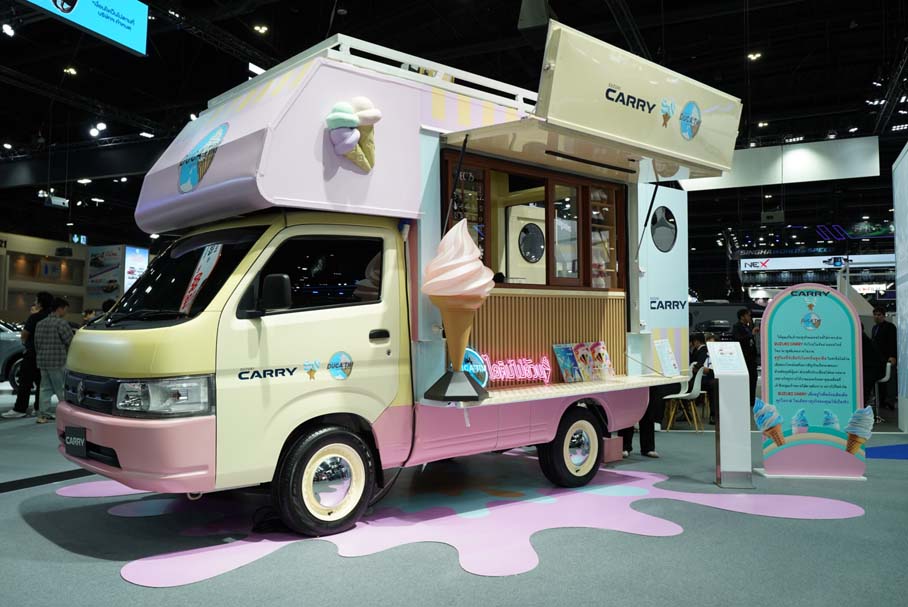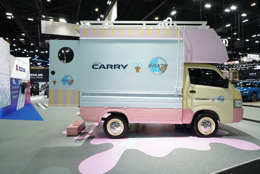 SUZUKI CARRY รถกระบะบรรทุกอเนกประสงค์ ที่ถูกออกแบบมาให้มีรูปลักษณ์ที่พร้อมจะนำไปดัดแปลงและพัฒนาต่อยอดให้เข้ากับทุกแนวทางของการดำเนินธุรกิจ จนเป็นที่ยอมรับในฐานะ Food Truck, Goods Truck และ Service Truck สามารถต่อยอดในการทำธุรกิจอื่นๆ เสมือนดั่งพาร์ทเนอร์คนสำคัญ ที่พร้อมจะสนับสนุนและร่วมขับเคลื่อนอยู่เคียงข้างผู้ใช้ด้วยความจริงใจ ราคาจำหน่ายเพียง 395,000 บาท โดยในงานนี้ ซูซูกิร่วมมือกับร้าน Duca'tim (ดูคาติม) แฟรนไชส์ไอศกรีม Soft Serve ชื่อดังคุณภาพพรีเมียม เพื่อตอกย้ำแนวคิด 'Carry Your Dream' สานฝันให้ธุรกิจเป็นจริงได้อย่างรวดเร็วและคุ้มค่า นำรถ SUZUKI CARRY มาดัดแปลงเป็น 'รถไอศกรีมเคลื่อนที่ Duca'tim' ที่ออกแบบมาอย่างลงตัวและครบวงจร รถคันนี้ไม่เพียงแต่โดดเด่นสะดุดตา แต่ยังมาพร้อมพื้นที่ใช้สอยและฟังก์ชันการใช้งานที่ครบครัน สำหรับอุปกรณ์จำหน่ายไอศกรีม ตลอดจนการจัดเก็บสินค้าได้อย่างลงตัว