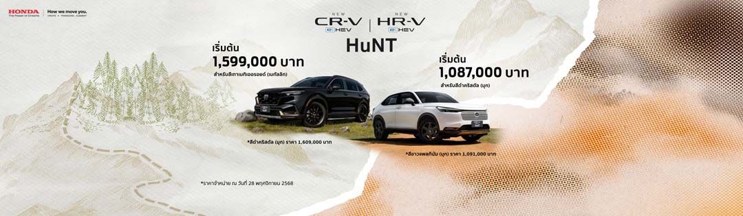 ข้อเสนอพิเศษ สำหรับ Honda HR-V e:HEV รุ่น e:HEV HuNT เมื่อจองตั้งแต่วันที่ 28 พฤศจิกายน 2568 –