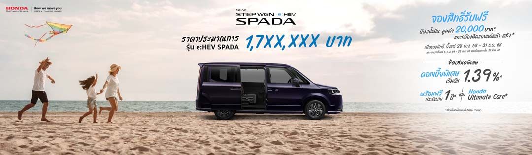 Honda STEP WGN e:HEV ใหม่ รุ่น e:HEV SPADA โดดเด่นด้วยดีไซน์ตัวถังทรงกล่องภายใต้แนวคิด Life Expander BOX พร้อมห้องโดยสารโปร่งโล่ง กว้างขวาง มอบความสะดวกสบายทุกที่นั่ง พร้อมเบาะที่ปรับพับได้หลากหลาย เพิ่มพื้นที่ใช้สอยอเนกประสงค์ ตอบโจทย์ทุกความต้องการของครอบครัว ยกระดับคุณค่าในฐานะพาร์ตเนอร์ที่สร้างโมเมนต์น่าจดจำในทุกการเดินทาง ให้ทุกเจเนอเรชัน STEP ใกล้กันยิ่งขึ้น… ‘WHAT BRINGS US TOGETHER’