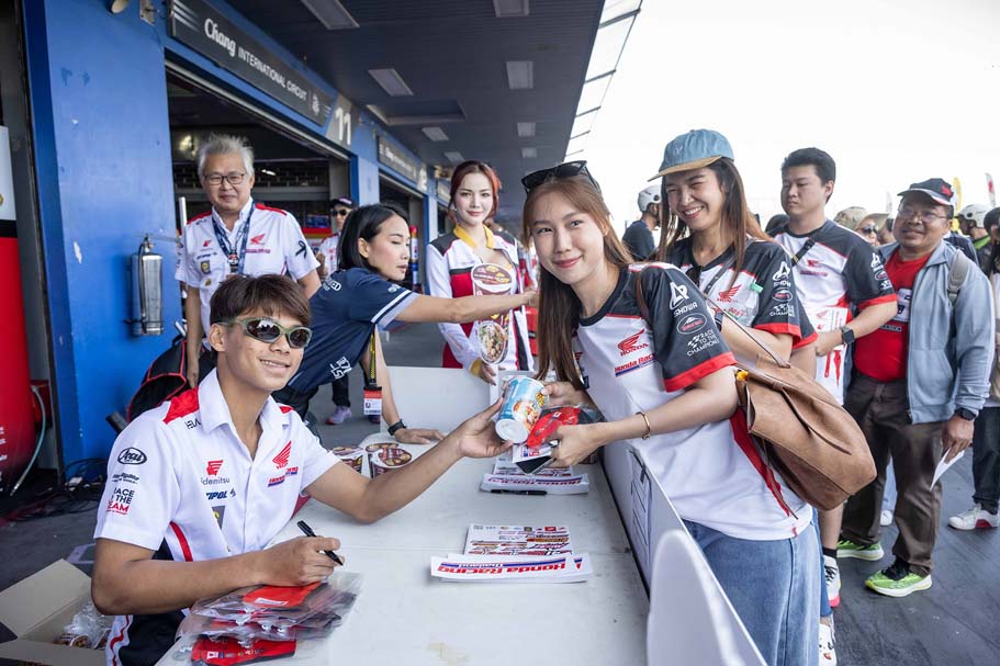 ส่งท้ายปีด้วยกิจกรรมพิทวอล์คสุด Exclusive บรรยากาศในพิทเลนคึกคักและประทับใจ ศิลปินคนดัง นำโดย “นิกกี้-ณฉัตร จันทพันธ์”, “โอม-ภวัต จิตต์สว่างดี” พระเอกขวัญใจวัยรุ่น ที่สนใจในกีฬาการแข่งรถจักรยานยนต์อย่างมาก และทำผลงานดีเยี่ยมจากสนามชิงแชมป์ประเทศไทยที่ผ่านมา ได้นำทัพแฟนคลับมากมาย มาสัมผัสบรรยากาศการทำทีมแข่งระดับเอเชียอย่างใกล้ชิด