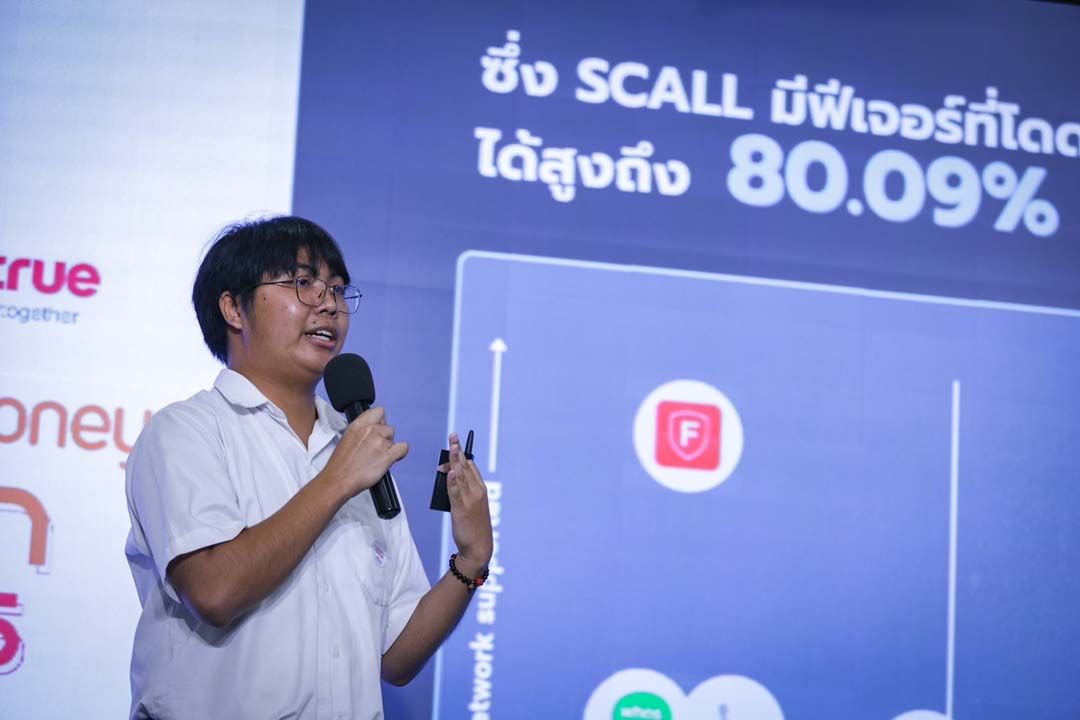ทีม แพรวา No.1 – นวัตกรรม “SCALL” แอปพลิเคชันที่ช่วยตรวจจับและแจ้งเตือนบทสนทนาทางโทรศัพท์ที่เข้าข่ายเป็นมิจฉาชีพได้แบบเรียลไทม์ ช่วยปกป้องผู้ใช้งานจากแก๊ง Call Center ก่อนเกิดความเสียหาย ระบบจะประเมินรูปแบบคำพูดและพฤติกรรมการสนทนาอย่างแม่นยำ พร้อมแจ้งเตือนผู้ใช้ทันทีเมื่อพบความเสี่ยง ซึ่ง “SCALL” ถูกออกแบบมาเพื่อให้ใช้งานง่าย รองรับทุกเครือข่ายมือถือ และให้ความสำคัญกับความเป็นส่วนตัวของข้อมูลผู้ใช้อย่างเคร่งครัด ทำให้เข้าถึงและปกป้องผู้ใช้งานได้ทุกช่วงวัย ไม่ว่าจะเป็นผู้สูงอายุ คนทำงาน หรือเยาวชน ดังนั้น ด้วยความสามารถในการตรวจจับภัยโทรศัพท์หลอกลวงได้อย่างทันท่วงที “SCALL” จึงเป็นโซลูชันสำคัญที่จะช่วยยกระดับความมั่นคงปลอดภัยดิจิทัลของคนไทยในชีวิตประจำวัน โดยตั้งเป้าลดจำนวนผู้เสียหายจากการถูกหลอกลวงได้มากกว่า 2,500 คน ภายในปีแรกสมาชิกในทีม แพรวา No.1