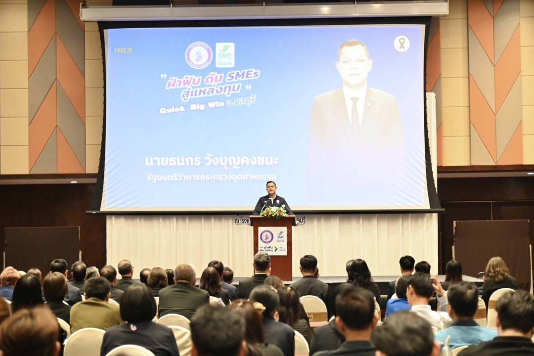 เมื่อวันที่ 11 ธันวาคม 2568 นายธนกร วังบุญคงชนะ รัฐมนตรีว่าการกระทรวงอุตสาหกรรม ลงพื้นที่จังหวัดชลบุรี ขับเคลื่อนนโยบาย “ฝ่า–ฟัน–ดึง–ดัน” ครอบคลุมทั้งผู้ประกอบการในระบบและเศรษฐกิจฐานราก ผ่านมหกรรม “ฝ่าฟัน ดัน SMEs สู่แหล่งทุน” ควบคู่กับการเปิดโมเดลพัฒนาเศรษฐกิจชุมชน ที่ตำบลหนองอิรุณ เพื่อให้ SMEs และประชาชนเข้าถึง ทุน–ทักษะ–โอกาส ได้อย่างรวดเร็วและทั่วถึง ภายใต้มหกรรมใหญ่ของ SME D Bank ในจังหวัดชลบุรี