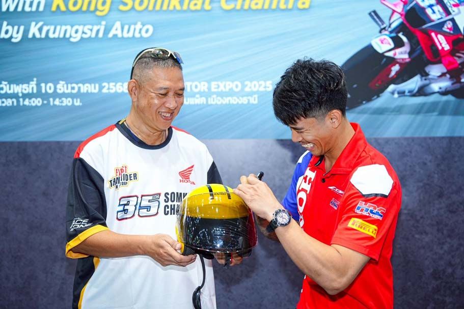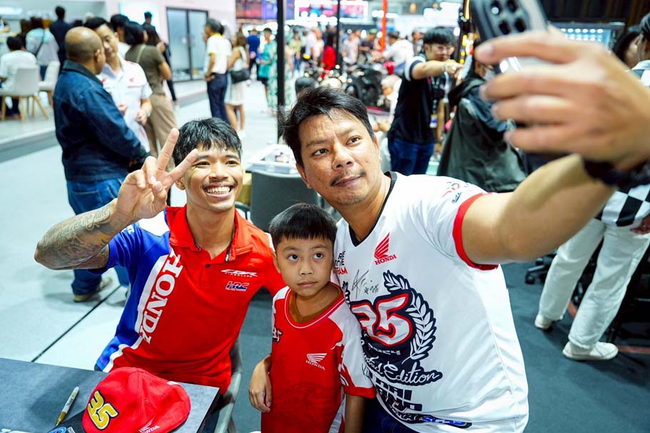 "ไทยฮอนด้า" ผู้นำวงการมอเตอร์สปอร์ตไทย ร่วมกับ กรุงศรี ออโต้ จัดกิจกรรมแฟนมี๊ต "ก้อง" สมเกียรติ จันทรา นักบิดโมโตจีพีชาวไทยคนแรกในประวัติศาสตร์ หลังผ่านการแข่งขันเข้มข้นตลอดทั้งปี "แฟนคลับ" หนาแน่น ร่วมส่งกำลังใจอย่างคับคั่งที่ บูธรถจักรยานยนต์ฮอนด้า ในงาน มอเตอร์ เอ็กซ์โป 2025