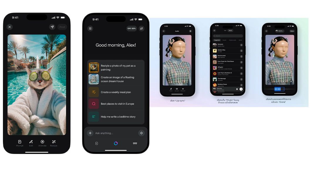 ปี 2026 คือปีของการกล้าเป็นตัวเองมากขึ้น Meta AI ชวนทุกคนสนุกกับการสร้างสรรค์คอนเทนต์ในแบบที่เข้าถึงง่าย ไม่ว่าจะเป็นการเปลี่ยนไอเดียหรืออารมณ์ให้กลายเป็นวิดีโอสั้นผ่านฟีเจอร์ Vibes หรือการเติมชีวิตชีวาให้รูปภาพด้วยฟีเจอร์ Lip Sync ที่ทำให้ภาพของคุณหรือสัตว์เลี้ยงขยับร้องเพลงได้อย่างสนุกสนาน พร้อมแชร์ต่อบน Instagram และ Facebook ได้ทันที