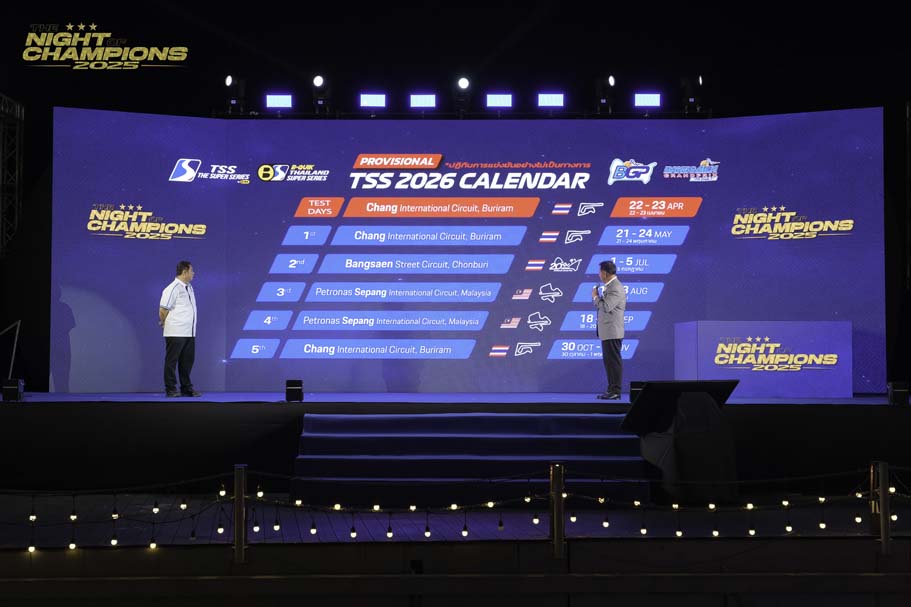 ทั้งนี้ การขยายสนามแข่งขันในต่างประเทศจะช่วยยกระดับ TSS ให้เป็นรายการแข่งขันที่สำคัญในปฏิทินมอเตอร์สปอร์ตของภูมิภาค และดึงดูดนักแข่ง ทีมแข่ง และผู้ชมจากทั่วเอเชียให้เข้ามามีส่วนร่วม มากยิ่งขึ้น