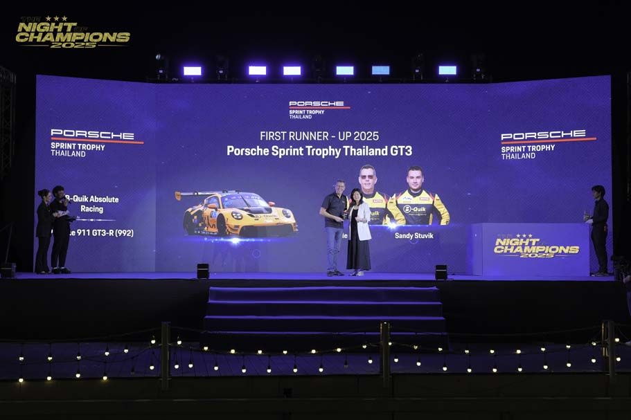 อีกหนึ่งไฮไลท์สำคัญ คือ การประกาศผลรางวัล Porsche Sprint Trophy Thailand 2025 การแข่งขันที่ได้รับการยอมรับในระดับนานาชาติ และเป็นเวทีสำคัญในการพัฒนา นักแข่งรถยนต์ปอร์เช่ในประเทศไทย โดยในรุ่น Porsche Sprint Trophy Thailand – GT3 ทำผลงานโดดเด่นจนคว้าตำแหน่ง Champion of the Year 2025 ไปครอง ได้แก่ คุณวุฒิกร อินทรภูวศักดิ์ (Mr. Vutthikorn Inthraphuvasak) จากทีม AAS Motorsport By EBM ขณะที่ตำแหน่งรองชนะเลิศอันดับหนึ่ง ได้แก่ Mr. Henk Kiks และ Mr. Sandy Stuvik จากทีม B-Quik Absolute Racing