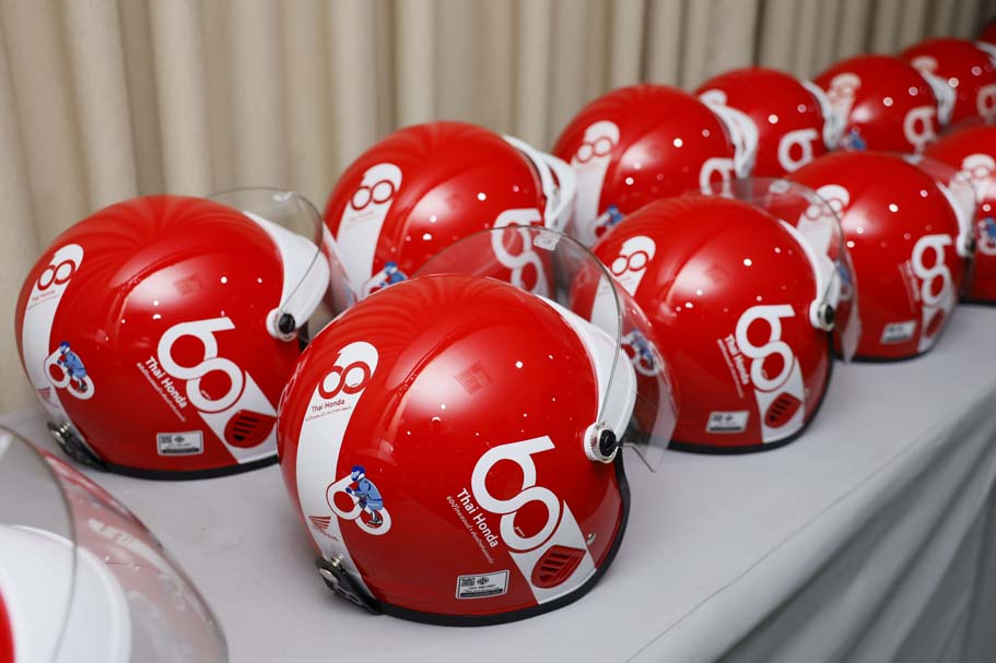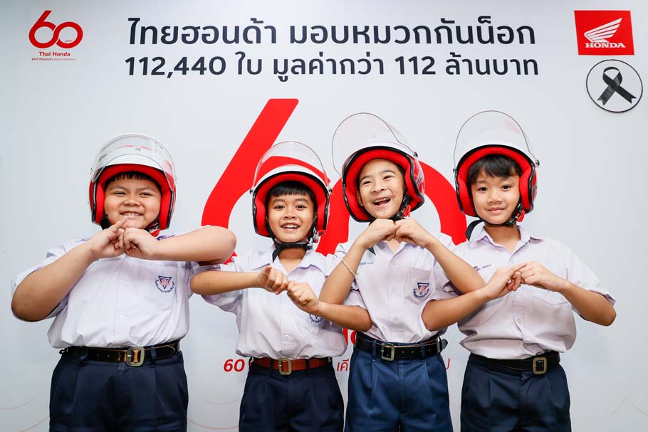 นายฮายาโตะ เซกุจิ รองประธานกรรมการบริหาร บริษัท ไทยฮอนด้า จำกัด กล่าวว่า เนื่องในโอกาสครบรอบ 60 ปี ไทยฮอนด้า บริษัทได้ดำเนินโครงการภายใต้แนวคิด ‘60 ปี ไทยฮอนด้า ขับขี่ปลอดภัย เพื่อสังคมไทยที่ยั่งยืน’ โดยตั้งใจส่งมอบหมวกกันน็อก จำนวน 60,000 ใบ และได้รับความร่วมมือจากผู้จำหน่ายรถจักรยานยนต์ฮอนด้าทั่วประเทศ ร่วมสมทบเพิ่มเติมอีก 52,440 ใบ ทำให้สามารถส่งมอบ หมวกกันน็อก รวมทั้งสิ้น 112,440 ใบ ครอบคลุมครบทั้ง 77 จังหวัดทั่วประเทศ