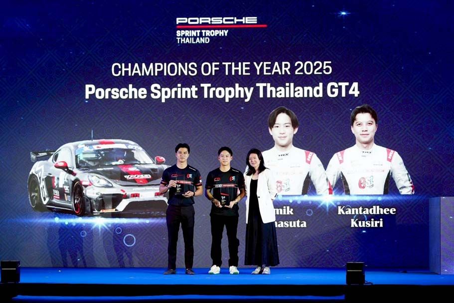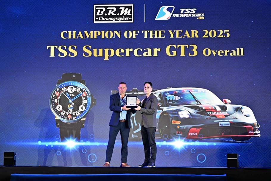 ขณะที่รุ่น TSS Supercar GT4 ของคู่หู “บูม–กันตธีร์ กุศิริ” และ “มิกกี้–คมิก กรรณสูต” กับรถแข่ง Porsche 718 Cayman GT4RS Clubsport หมายเลข 1 ที่ทำผลงานได้อย่างยอดเยี่ยม เก็บคะแนนรวมคว้าถ้วยรองชนะเลิศอันดับ 1 พร้อมพาทีม AAS Motorsport คว้าถ้วย Team Champion of the Year 2025 – Supercar GT4 Overall มาครองได้อย่างภาคภูมิ