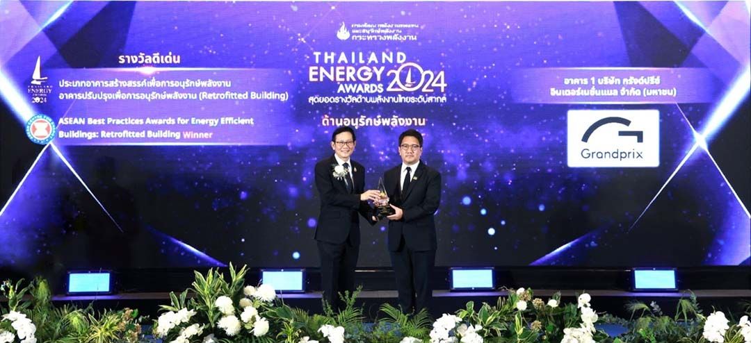 บริษัท กรังด์ปรีซ์ อินเตอร์เนชั่นแนล จำกัด (มหาชน) โดย นายพีระพงศ์ เอี่ยมลำเนา ประธานเจ้าหน้าที่บริหาร เข้ารับรางวัลดีเด่น ประเภทอาคารสร้างสรรค์เพื่อการอนุรักษ์พลังงาน สาขา อาคารปรับปรุงเพื่อการอนุรักษ์พลังงาน (Retrofitted Building) ซึ่งถือเป็นอีกหนึ่งรางวัลอันทรงเกียรติ ในงาน “Thailand Energy Awards 2024” จัดโดยกรมพัฒนาพลังงานทดแทนและอนุรักษ์พลังงาน (พพ.) กระทรวงพลังงาน โดยได้รับเกียรติจาก นายอรรถพล ฤกษ์พิบูลย์ รัฐมนตรีว่าการกระทรวงพลังงาน เป็นประธานในพิธีมอบรางวัล ณ ห้องแซฟไฟร์ 202 อาคารอิมแพ็ค ฟอรั่ม ชั้น 2 อิมแพ็ค เมืองทองธานี เมื่อวันอังคารที่ 23 ธันวาคม 2568 ที่ผ่านมา