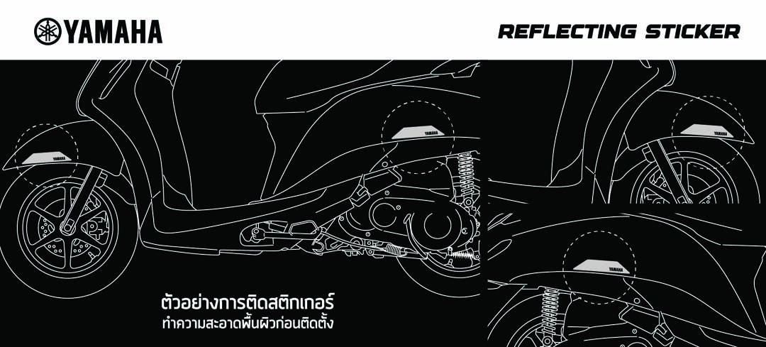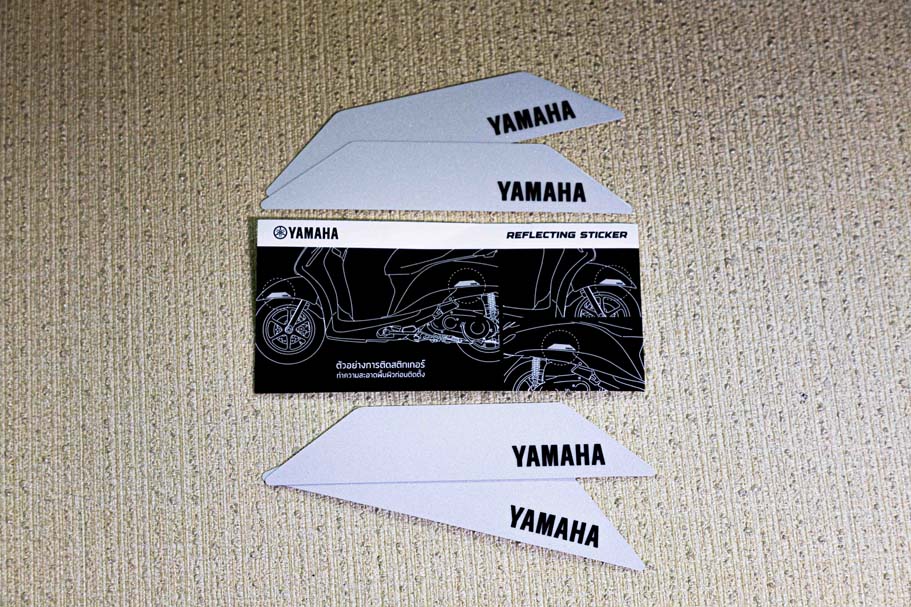 สำหรับสติกเกอร์สะท้อนแสงที่ยามาฮ่าจัดทำขึ้น ออกแบบมาเพื่อเพิ่มการมองเห็นในสภาพแสงน้อย ช่วยให้ผู้ใช้รถใช้ถนน สามารถสังเกตเห็นรถจักรยานยนต์ได้ชัดเจนยิ่งขึ้น ซึ่งเป็นอีกหนึ่งแนวทางในการเสริมสร้างความปลอดภัยให้กับผู้ขับขี่