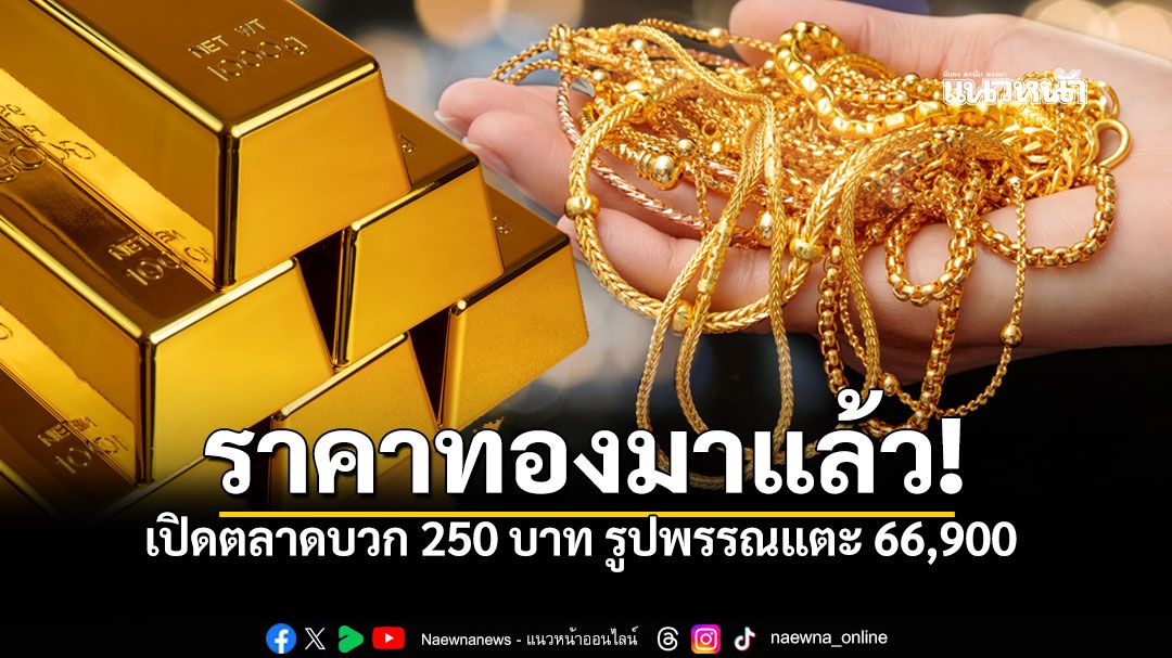 เช็คราคาทองวันนี้ ราคาปรับเพิ่ม 250 บาท ทองรูปพรรณขายออก 66,900 บาท