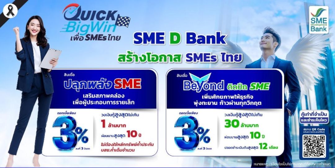 นายพิชิต มิทราวงศ์ กรรมการผู้จัดการ ธนาคารพัฒนาวิสาหกิจขนาดกลางและขนาดย่อมแห่งประเทศไทย (ธพว.) หรือ SME D Bank เปิดเผยว่า จากมติที่ประชุมคณะรัฐมนตรี (ครม.) เห็นชอบมาตรการ “Quick Big Win เพื่อ SMEs ไทย” เพื่อสนับสนุนและส่งเสริมผู้ประกอบการเอสเอ็มเข้าถึงแหล่งเงินทุนได้อย่างทั่วถึง เมื่อวันที่ 2 ธันวาคม 2568 ที่ผ่านมา SME D Bank สถาบันการเงินเฉพาะกิจของรัฐ ภายใต้การกำกับดูแลของกระทรวงการคลัง ขานรับดำเนินการตามนโยบายดังกล่าว ด้วยการออก 2 โครงการสินเชื่อตามนโยบายรัฐบาล วงเงินรวม 20,000 ล้านบาท ได้แก่ “โครงการสินเชื่อ ปลุกพลัง SME” และ “โครงการสินเชื่อ Beyond ติดปีก SME” ตอบโจทย์ผู้ประกอบการเอสเอ็มอีตั้งแต่รายเล็กถึงรายกลางให้เข้าถึงแหล่งทุนอัตราดอกเบี้ยพิเศษเพียง 3%ต่อปี คงที่ตลอด 3 ปีแรก ช่วยเสริมสภาพคล่อง เพิ่มประสิทธิภาพ ยกระดับธุรกิจให้สามารถเดินหน้ากิจการได้ต่อเนื่องตลอดปี นำไปสู่การเติบโตอย่างยั่งยืน เปิดรับแจ้งความประสงค์ตั้งแต่บัดนี้ จนถึงวันที่ 30 ธันวาคม 2569 หรือจนกว่าวงเงินสินเชื่อจะหมด แล้วแต่อย่างใดอย่างหนึ่งจะถึงก่อน
