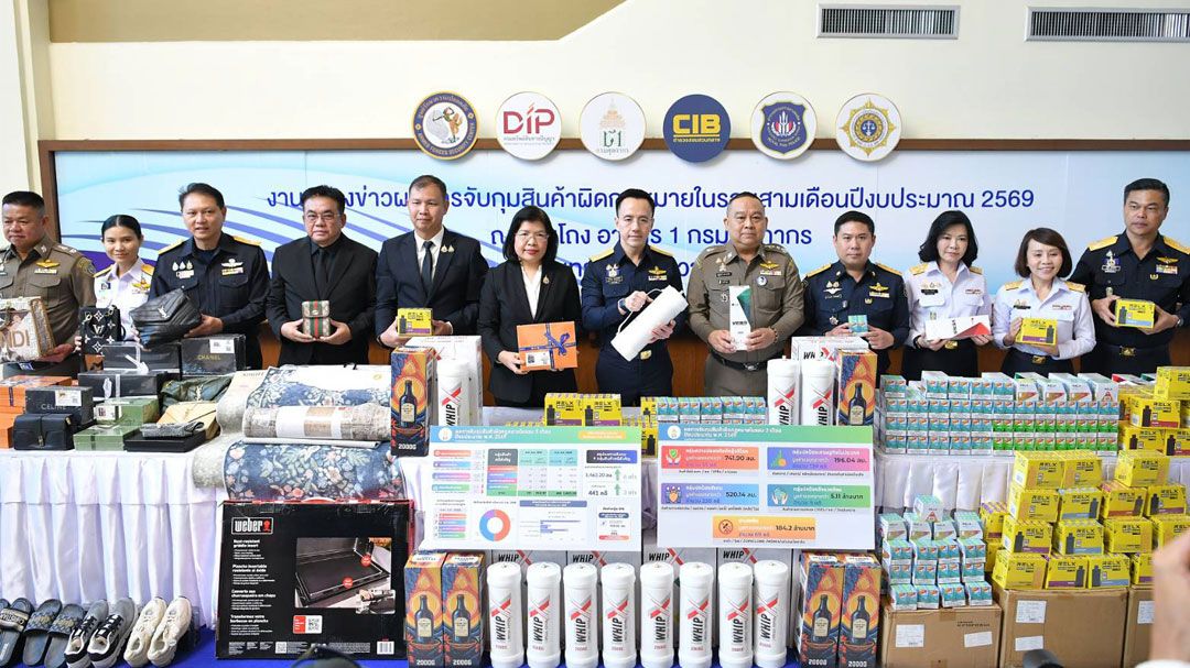 นางอรมน ทรัพย์ทวีธรรม อธิบดีกรมทรัพย์สินทางปัญญา ร่วมแถลงผลสำเร็จในความร่วมมือปราบปรามสินค้าละเมิดทรัพย์สินทางปัญญาและสินค้าผิดกฎหมาย ร่วมกับนายพันธ์ทอง ลอยกุลนันท์ อธิบดีกรมศุลกากร พล.ต.ท.ณัฐศักดิ์ เชาวนาศัย ผู้บัญชาการตำรวจสอบสวนกลาง (CIB) และหน่วยงานที่เกี่ยวข้อง ณ ห้องโถง อาคาร 1 กรมศุลกากร เผยผลจับกุมในรอบ 3 เดือน(ตุลาคม - ธันวาคม 2568) สามารถปราบสินค้าละเมิดทรัพย์สินทางปัญญา ได้กว่า 80,000 ชิ้น มูลค่ารวมกว่า 708 ล้านบาท