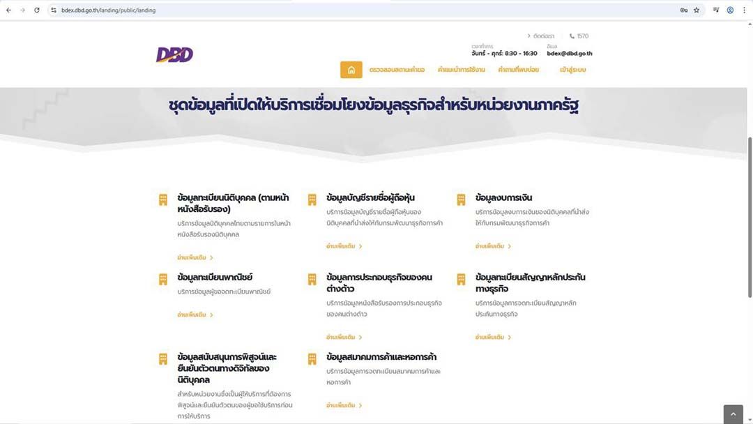 ปัจจุบัน หน่วยงานภาครัฐได้มีการเชื่อมโยงข้อมูลผ่านระบบดิจิทัลแทนการขอเอกสารในรูปแบบกระดาษ โดยมีหน่วยงานภาครัฐที่เชื่อมโยงข้อมูลนิติบุคคล ในรูปแบบ Web Service ผ่านระบบ Business Data Exchange (BDEX) แล้ว 179 หน่วยงาน และกรมฯ ยังได้ดำเนินการเชิงรุกขยายผลการใช้งาน ด้วยการเชิญชวนหน่วยงานภาครัฐเพิ่มเติมอีก 226 หน่วยงาน ให้เข้ามาใช้บริการเชื่อมโยงข้อมูลนิติบุคคลผ่านระบบ BDEX เพื่อการตรวจสอบข้อมูลนิติบุคคลที่สะดวก รวดเร็ว และเป็นปัจจุบัน แบบ Real-time