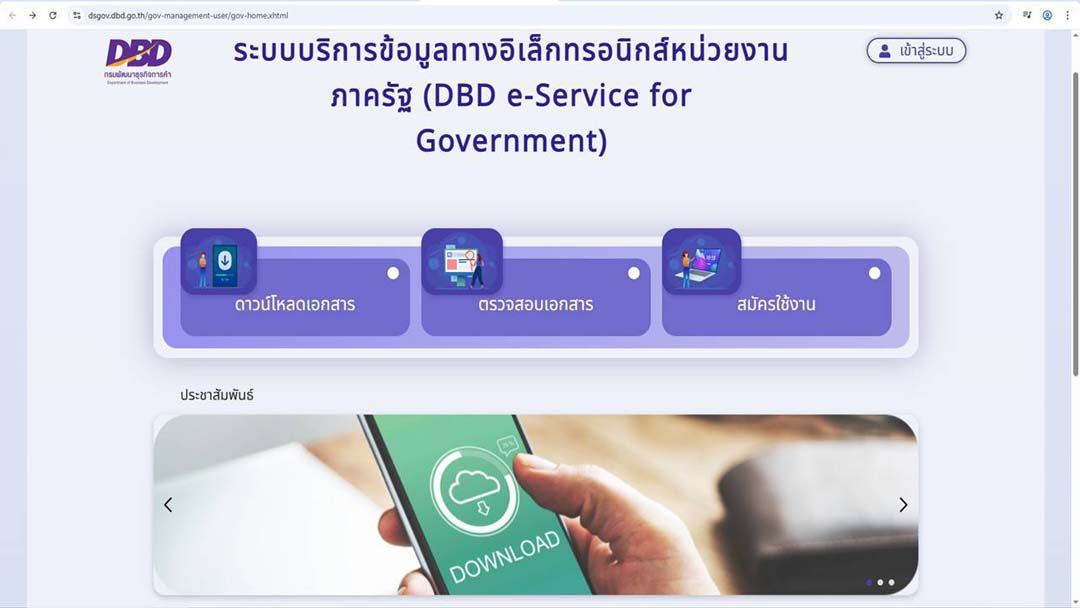 นอกจากนี้ หน่วยงานภาครัฐยังสามารถขอรับบริการหนังสือรับรอง รับรองสำเนาเอกสารทางทะเบียน งบการเงิน และบัญชีรายชื่อผู้ถือหุ้น ในรูปแบบไฟล์อิเล็กทรอนิกส์ ผ่านระบบ DBD E-Service for Government ซึ่งมีการลงลายมือชื่ออิเล็กทรอนิกส์ (Digital Signature) ที่น่าเชื่อถือและมีผลผูกพันตามกฎหมาย โดยปัจจุบันมีหน่วยงานภาครัฐเข้าใช้งานแล้วกว่า 40 หน่วยงาน สามารถลดการใช้กระดาษ ระยะเวลาการรอคอยในการจัดส่งเอกสารทางราชการได้อย่างมีนัยสำคัญ