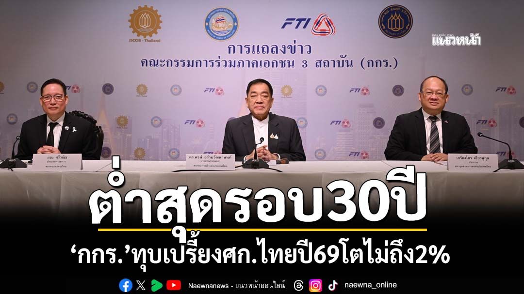 7 มกราคม 2569 ดร.พจน์ อร่ามวัฒนานนท์ ประธานกรรมการสภาหอการค้าแห่งประเทศไทย แถลงสรุปผลการประชุมคณะกรรมการร่วมภาคเอกชน 3 สถาบัน (กกร.) ระบุว่า กกร.คาดการณ์ว่าเศรษฐกิจไทยปี 2569 มีแนวโน้มโตต่ำกว่า 2% เป็นครั้งแรกในรอบ 30 ปี หากไม่รวมช่วงวิกฤติ ท่ามกลางความท้าทายรอบด้าน และคาดว่าไทยจะโตต่ำสุดในภูมิภาค จากทั้งความเปราะบางเชิงโครงสร้างที่มีอยู่เดิมด้วยขนาดเศรษฐกิจนอกระบบที่ใหญ่และหนี้ครัวเรือนสูง ขาดความสามารถทางการแข่งขันในโลกใหม่ ข้อจำกัดทางงบประมาณทางการคลัง และความท้าทายของภาครัฐที่มีกฎระเบียบจำนวนมากและข้อมูลขาดความเชื่อมโยง กอปรกับผลกระทบจากภัยพิบัติในปีก่อนหน้า ค่าเงินบาทแข็งค่า อาชญากรรมทางไซเบอร์ การเคลื่อนย้ายเงินทุนเทา และความเสี่ยงจากกระบวนการจัดทำงบประมาณที่ล่าช้า