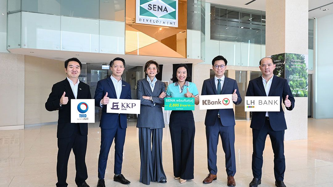 คุณนพพันธ์ ตั้งกัลยานนท์ หัวหน้าฝ่ายพัฒนาความสัมพันธ์ลูกค้า 2 สายธุรกิจขนาดใหญ่ กลุ่มลูกค้าบรรษัท ธนาคารทิสโก้ จำกัด (มหาชน), คุณวิศรุต ปัญญาภิญโญผล Real Estate Lending Head ธนาคารเกียรตินาคินภัทร จำกัด (มหาชน), ผศ.ดร.เกษรา ธัญลักษณ์ภาคย์ กรรมการผู้จัดการ , คุณอธิกา บุญรอดชู ผู้ช่วยกรรมการผู้จัดการ บริษัท เสนาดีเวลลอปเม้นท์ จำกัด (มหาชน), คุณจาตุรเชษฐ นิลธวัช ผู้บริหารธุรกิจสหบรรษัท ธนาคารกสิกรไทย จำกัด (มหาชน) และคุณปิยะ พัฒน์วิริยะรัตน์ รองประธานเจ้าหน้าที่บริหารกลุ่มลูกค้าธุรกิจ ธนาคารแลนด์ แอนด์ เฮ้าส์ จำกัด (มหาชน) (จากภาพเรียงจากซ้ายไปขวา) ร่วมแสดงความพร้อมในการสนับสนุนทางการเงิน วงเงินรวม 3,200 ล้านบาท เพื่อรองรับการชำระคืนหุ้นกู้ที่ครบกำหนดไถ่ถอนในช่วงปลายเดือนมกราคมและต้นเดือนกุมภาพันธ์ ปี พ.ศ. 2569 สะท้อนความเชื่อมั่นต่อศักยภาพ ฐานะการเงิน และวินัยทางการเงินของ SENA ในระยะยาว