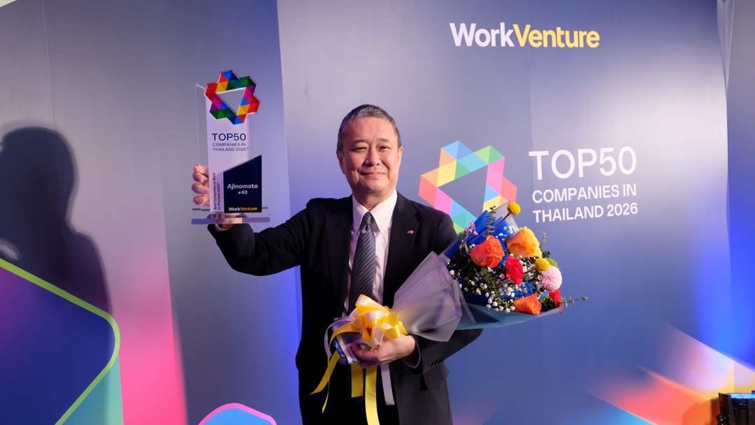บริษัท อายิโนะโมะโต๊ะ (ประเทศไทย) จำกัด องค์กรชั้นนำระดับโลกด้านอาหารและโภชนาการ ภายใต้ปรัชญา “กินดี มีสุข (Eat Well, Live Well.)” สร้างอีกหนึ่งความภาคภูมิใจ ด้วยการคว้ารางวัล “Top50 Companies in Thailand 2026™” ติดอันดับที่ 40 บริษัทที่คนรุ่นใหม่อยากร่วมงานด้วยมากที่สุด โดย WorkVenture จากกว่า 720 องค์กรชั้นนำ ผ่านการสำรวจความคิดเห็นของกลุ่มคนรุ่นใหม่อายุ 22–35 ปี ในเขตกรุงเทพฯ และปริมณฑล นับเป็นปีแรกที่อายิโนะโมะโต๊ะได้รับรางวัลอันทรงคุณค่านี้ สะท้อนถึงความสำเร็จในการปรับตัวขององค์กรให้สอดรับกับโลกการทำงานยุคใหม่ โดยให้ความสำคัญกับ Well-being ของพนักงานอย่างรอบด้าน ควบคู่ไปกับโอกาสในการเติบโตในสายอาชีพ และการสร้างประสบการณ์การทำงานที่มีความหมาย