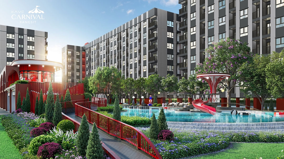 โครงการ Kave Carnival รังสิต เป็นโครงการแคมปัสคอนโดมิเนียมแบบ Low rise สูง 8 ชั้น จำนวน 4 อาคาร ใกล้ ม.รังสิต เพียง 5 นาที ติดถนนใหญ่ ถ.รังสิต-ปทุมธานี นำแรงบันดาลใจจากงาน Carnival ที่เต็มไปด้วยความสนุกสนาน และสีแดงที่สะท้อนความแอคทีฟ มาสร้างบรรยากาศให้รู้สึกเหมือนได้ก้าวเข้าสู่โลกที่เต็มไปด้วยสีสันและความพิเศษได้ทุกวัน ด้วยพื้นที่ส่วนกลางที่รองรับทั้งการพักผ่อนและกิจกรรมแอคทีฟตลอด 24 ชม. มากถึง 40 กิจกรรม เช่น สระว่ายน้ำ 2 สไตล์ Lap Pool ยาว 25 ม. และ Lazy Pool พร้อมสไลเดอร์, Mini Theater, Kave Kitchen, Kave Café, Mystic Gym รวมถึงโซนอ่านหนังสือและปล่อยพลังครีเอทีฟในทุกอาคารทั้งใน Fairy Co-Working หรือ Cotton Candy Lounge