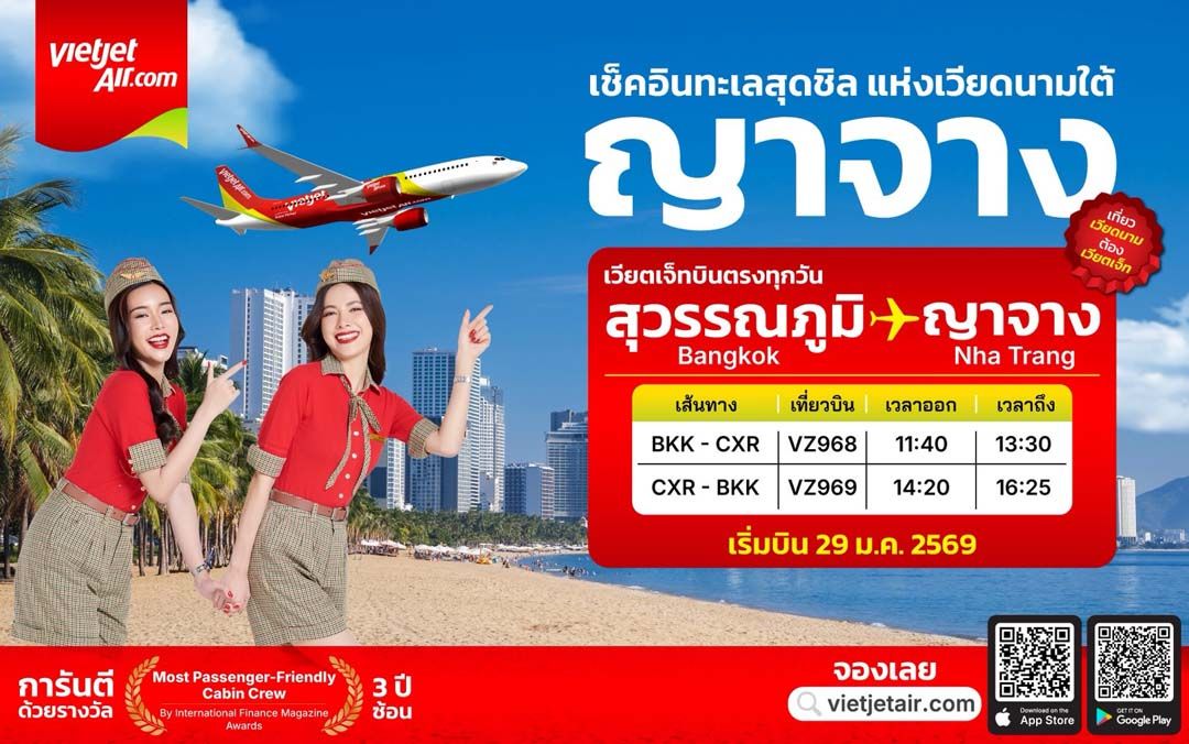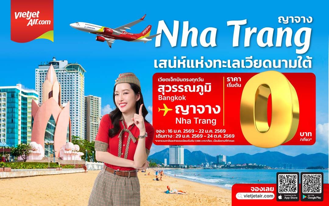 พิเศษ! เพื่อฉลองการเปิดเส้นทางบินใหม่เวียตเจ็ทไทยแลนด์จึงส่งมอบโปรโมชันสุดคุ้มสำหรับเส้นทางกรุงเทพฯ – ญาจาง โดยสามารถสำรองบัตรโดยสารเริ่มต้นในราคา 0 บาท *ราคารวมภาษีและค่าธรรมเนียมเริ่มต้น 1,566 บาท/เที่ยว (เงื่อนไขเป็นไปตามที่บริษัทกำหนด) สำรองที่นั่งบัตรโดยสารได้แล้วตั้งแต่วันนี้เป็นต้นไป - 22 มกราคม 2569 โดยมีกำหนดการเดินทางระหว่างวันที่ 29 มกราคม – 24 ตุลาคม 2569 สำหรับบัตรโดยสารราคาโปรโมชัน