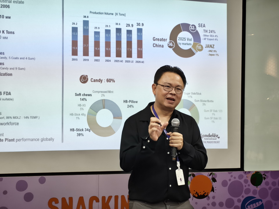 นายจิรพงษ์ เจริญศรี ผู้อำนวยการฝ่ายซัพพลายเชนประเทศไทย บริษัท มอนเดลีซ อินเตอร์เนชันแนล (ประเทศไทย) จำกัด เปิดเผยว่า โรงงานมอนเดลีซ นิคมอุตสาหกรรมลาดกระบัง เป็นหนึ่งในฐานการผลิตที่สำคัญของภูมิภาคเอเชีย ดำเนินการผลิตลูกอมและหมากฝรั่งภายใต้แบรนด์ชั้นนำ อาทิ ฮอลล์, เดนทีน และคลอเร็ท โดยมีปริมาณการผลิตรวมประมาณ 30,000 ตันต่อปี ครอบคลุมผลิตภัณฑ์กว่า 190 รายการ เพื่อจำหน่ายภายในประเทศ และส่งออกไปยังประเทศต่างๆ ทั่วเอเชียแปซิฟิก อาทิ จีน เกาหลี ญี่ปุ่น ออสเตรเลีย นิวซีแลนด์