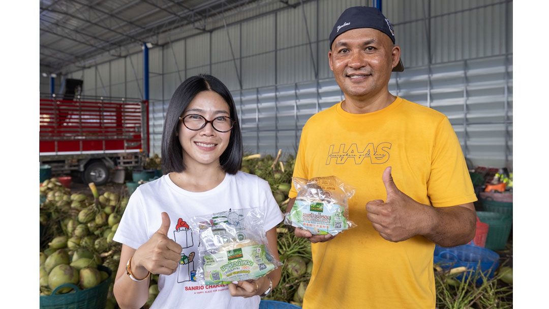 ทุกขั้นตอนถูกควบคุมคุณภาพอย่างละเอียด โดยมะพร้าวที่ผ่านการคัดเลือกต้องมีขนาดเส้นผ่าศูนย์กลางลูก เฉลี่ย 10 ซม. ตามสเปกที่กำหนด ก่อนส่งต่อเข้าสู่กระบวนการผลิตของโรงแพ็กโคโค่ เฟรส เพื่อแปรรูปเป็นมะพร้าวพร้อมทานสำหรับวางจำหน่ายในร้านเซเว่น อีเลฟเว่น กระบวนการนี้ไม่เพียงยกระดับคุณภาพสินค้า แต่ยังเป็นการ สร้างงาน สร้างอาชีพที่มั่นคงให้คนในชุมชนอย่างเป็นรูปธรรม