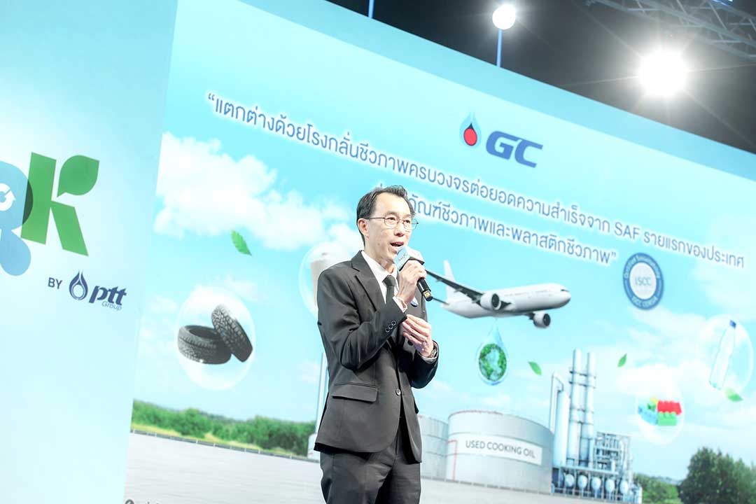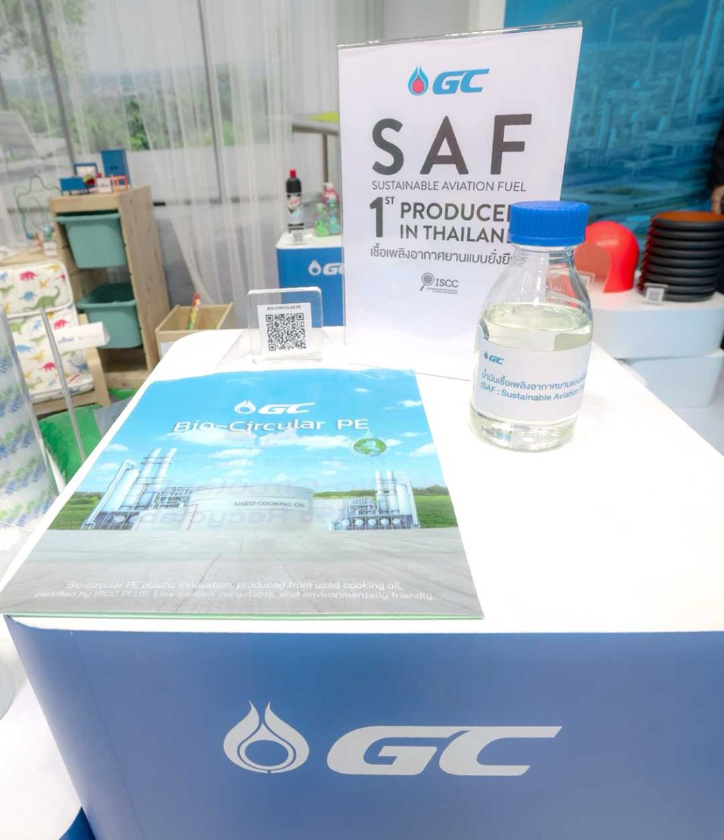 GC เป็นผู้บุกเบิกการผลิต SAF เชิงพาณิชย์รายแรกของประเทศไทย ผ่านการพัฒนาโรงกลั่นชีวภาพที่ใช้เทคโนโลยี Co-processing เปลี่ยนน้ำมันพืชใช้แล้ว (Used Cooking Oil: UCO) ให้กลายเป็นพลังงานสะอาดและวัตถุดิบชีวภาพ โดยเลือกปรับปรุงและต่อยอดโรงกลั่นเดิมให้เกิดประสิทธิภาพสูงสุด ช่วยลดต้นทุนและระยะเวลาเมื่อเทียบกับการลงทุนสร้างโรงงานใหม่ กระบวนการดังกล่าวได้รับการรับรองมาตรฐานความยั่งยืนระดับสากล ISCC CORSIA ซึ่งเป็นที่ยอมรับในอุตสาหกรรมการบินทั่วโลก และสามารถลดการปล่อยก๊าซคาร์บอนไดออกไซด์ได้สูงสุดถึง 85% เมื่อเทียบกับน้ำมันเชื้อเพลิงอากาศยานทั่วไป ตอกย้ำกลยุทธ์ธุรกิจมูลค่าสูงและคาร์บอนต่ำที่สามารถดำเนินการได้จริง