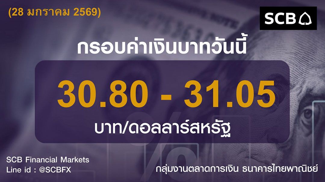 กลุ่มงานตลาดการเงิน ธนาคารไทยพาณิชย์ ประเมินค่าเงินบาทวันนี้เคลื่อนไหวในกรอบ 30.80-31.05 บาทต่อ ดอลลาร์