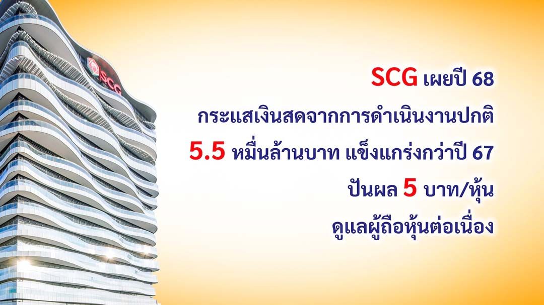 ‘เอสซีจี’เผยปี68 กระแสเงินสดจากการดำเนินงานปกติ 5.5 หมื่นล้านบาท แข็งแกร่งกว่าปี67