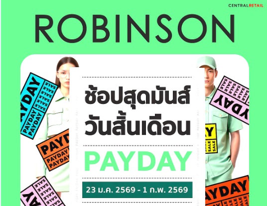 จัดแคมเปญ “ROBINSON PAYDAY ช้อปสุดมันส์ วันสิ้นเดือน”ตั้งแต่วันนี้ถึง 1 กุมภาพันธ์ 2569 ที่ห้างโรบินสันทุกสาขา (ยกเว้นสาขาจังซีลอน) สมาชิกบัตรเครดิตเซ็นทรัล เดอะวัน รับคูปองส่วนลดและเครดิตเงินคืน รวมสูงสุด 7,500 บาท สมาชิกเดอะวัน แลก 1,000 คะแนน รับส่วนลด 150 บาท (ไม่มีขั้นต่ำ) ผ่านแอปพลิเคชัน The 1 พร้อมต่อเนื่องความคุ้มกับแคมเปญ “ช้อป โรบินสัน ดี มีคืนเพิ่ม” ตั้งแต่วันนี้ถึง 26 กุมภาพันธ์ 2569 (ยกเว้นวันที่ 27-28 กุมภาพันธ์ 2569) ที่ห้างโรบินสันทุกสาขา และทุกช่องทางการช้อปของห้างฯ คุ้มที่ 1: คุ้มคืนทันทีตั้งแต่การช้อป รับคูปองส่วนลดในรายการปกติ พร้อมคูปองเพิ่มพิเศษ รวมสูงสุด 1,500 บาท เมื่อช้อปครบ 15,000 บาทขึ้นไป คุ้มที่ 2: คุ้มต่อด้วยส่วนลด On Top รับโปรโมชันส่วนลด On Top จากบัตรเครดิตที่ร่วมรายการ คุ้มที่ 3: คุ้มลุ้นรางวัลใหญ่ รับสิทธิ์ร่วมกิจกรรม Lucky Draw ลุ้นรางวัลใหญ่ รถยนต์ และของรางวัลอื่นๆ รวมมูลค่ากว่า 700,000 บาท