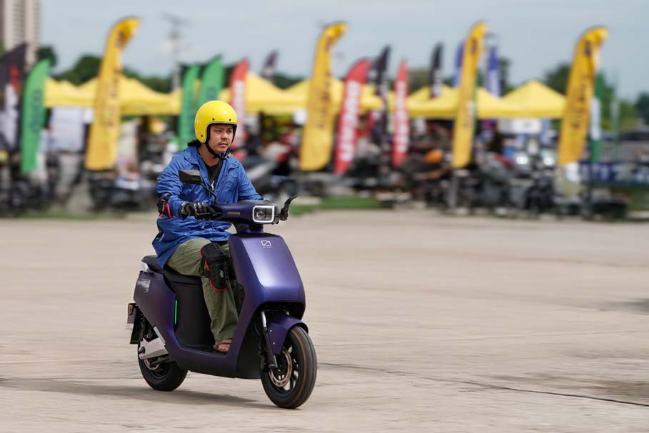 - เช็กรูปแบบการใช้งาน ผู้ใช้รถควรเริ่มจากการประเมินรูปแบบการเดินทางของตนเองเป็นหลัก เพราะหากเน้นใช้งานในเมือง ขี่ไปทำงาน หรือทำธุระ ด้วยระยะทางเฉลี่ยราว 20–50 กิโลเมตรต่อวันการซื้อมอเตอร์ไซค์ไฟฟ้าที่วิ่งได้ประมาณ 60–70 กิโลเมตรต่อการชาร์จก็ถือว่าเพียงพอ ในขณะที่ถ้าเป็นกลุ่มไรเดอร์หรือผู้ใช้งานเชิงพาณิชย์ที่ต้องขับขี่ต่อเนื่องตลอดวัน ควรมองหารุ่นที่สามารถขับขี่ได้อย่างน้อย 120–150 กิโลเมตรต่อการชาร์จ หรือรองรับระบบสลับแบตเพื่อลดเวลาหยุดชาร์จระหว่างวัน แต่หากเป็นคนชอบท่องเที่ยวหรือเดินทางไกลเป็นครั้งคราว ควรเลือกมอเตอร์ไซค์ไฟฟ้าที่มีแบตเตอรี่ความจุสูง รองรับการเดินทางระยะ 150 กิโลเมตรขึ้นไป พร้อมระบบชาร์จเร็ว เพื่อให้สามารถขี่ได้อย่างต่อเนื่องตลอดเส้นทาง