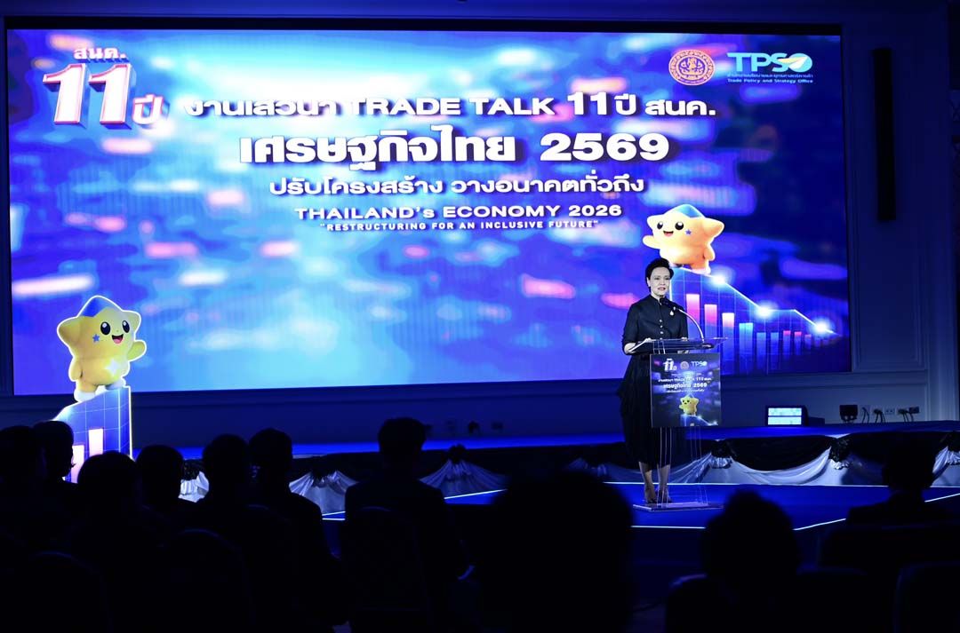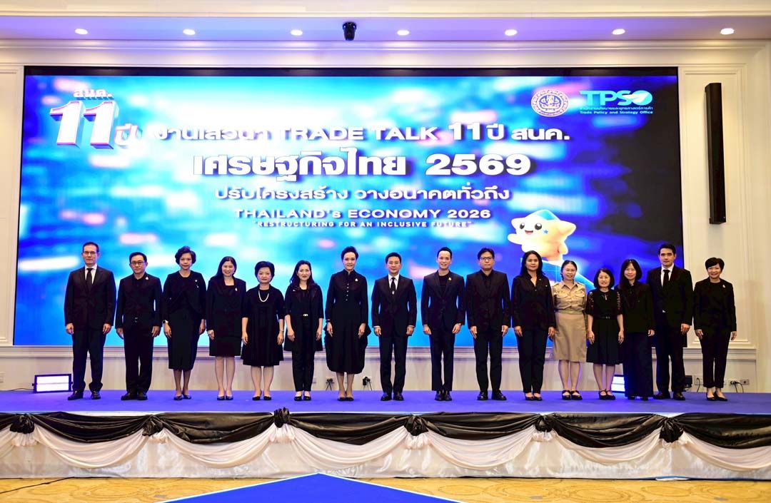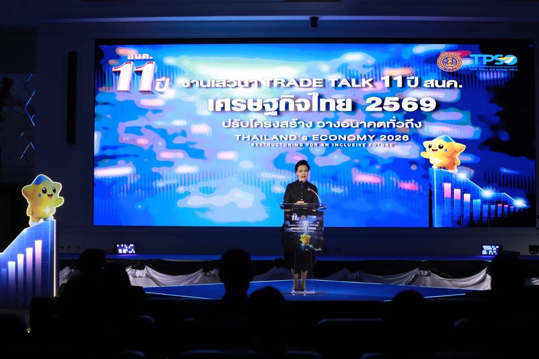 นางศุภจี สุธรรมพันธุ์ รัฐมนตรีว่าการกระทรวงพาณิชย์ เป็นประธานเปิดงานเสวนา Trade Talk ครบรอบ 11 ปี สนค. ในหัวข้อ “เศรษฐกิจไทย 2569: ปรับโครงสร้าง วางอนาคตทั่วถึง” (Thailand’s Economy 2026: Restructuring for an Inclusive Future) ณ ห้องบุรฉัตรไชยากร กระทรวงพาณิชย์ เมื่อวันที่ 2 กุมภาพันธ์ 2569 เพื่อถ่ายทอดเรื่องราวความก้าวหน้าขององค์กรและสะท้อนวิสัยทัศน์สู่อนาคต ผ่านการนำเสนอผลงานของบุคลากร สนค. การสาธิตระบบสำคัญ และการเผยแพร่องค์ความรู้ โดยมีนายวุฒิไกร ลีวีระพันธุ์ ปลัดกระทรวงพาณิชย์ คณะผู้บริหารกระทรวงพาณิชย์ ผู้แทนจากภาครัฐ ภาคเอกชน และสื่อมวลชนเข้าร่วมงานกว่า 200 คน