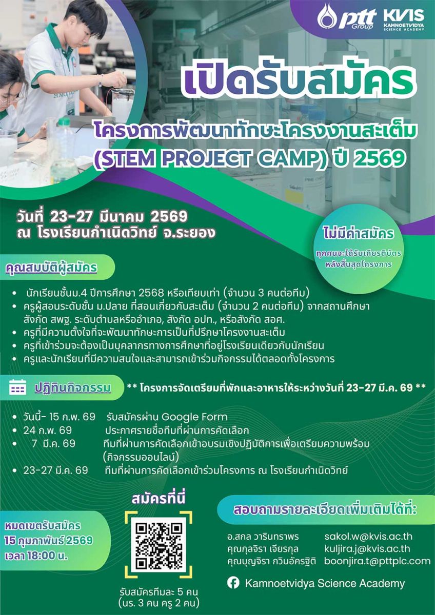 2. โครงการพัฒนาทักษะโครงงานสะเต็ม (STEM Project Camp) ปี 2569
