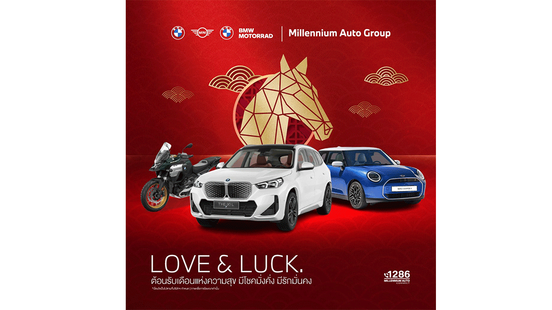 บริษัท มิลเลนเนียม ออโต้ กรุ๊ป จำกัด ร่วมฉลองเดือนแห่งความรักและความมงคล ภายใต้แคมเปญ ‘LOVE & LUCK’ เชื่อมโยงเทศกาลวาเลนไทน์และตรุษจีน ผสานกิจกรรมและข้อเสนอพิเศษตลอดเดือนกุมภาพันธ์ 2569 ที่โชว์รูม บีเอ็มดับเบิลยู มิลเลนเนียม ออโต้ และ มินิ มิลเลนเนียม ออโต้ ทุกสาขาทั่วประเทศ