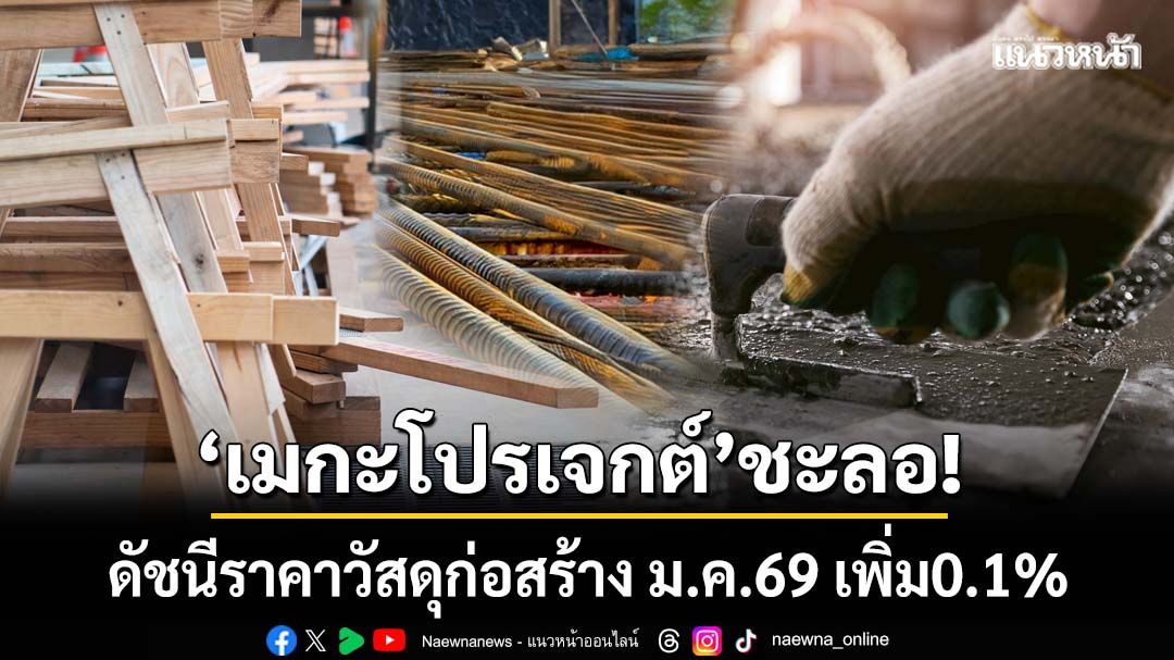 ‘เมกะโปรเจกต์’ชะลอ! ดัชนีราคาวัสดุก่อสร้าง ม.ค.69 เพิ่มแค่ 0.1% จับตาบางสินค้าราคาขึ้น