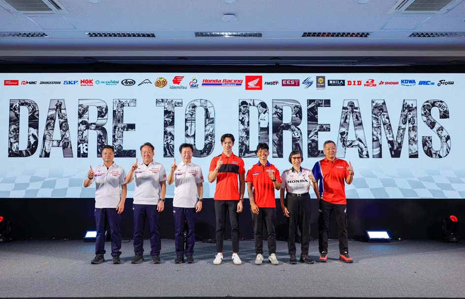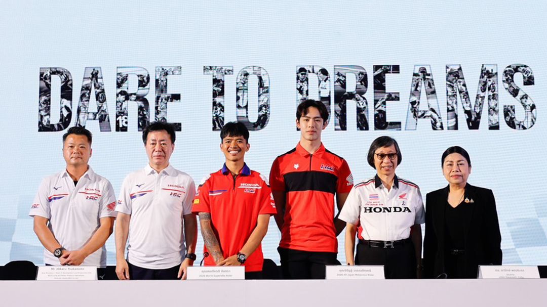 “ไทยฮอนด้า” แถลงนโยบายมอเตอร์สปอร์ต ประจำปี 2026 ภายใต้คอนเซปต์ Dare To Dreams ยกระดับวงการมอเตอร์สปอร์ไทยอีกครั้ง ด้วยการส่งนักแข่งไทยเข้าสู่สังกัดทีมโรงงานระดับโลก ฮอนด้า เอชอาร์ซี (Honda HRC) ได้พร้อมกันถึง 2 คน ทั้งทางเรียบและทางฝุ่น นำโดย “ก้อง-สมเกียรติ” ในศึก เวิลด์ ซูเปอร์ไบค์ แชมเปี้ยนชิพ 2026 และ “นีโม่-จิรัฎฐ์” ในศึก ออลเจแปน โมโตครอส แชมเปี้ยนชิพ 2026 พร้อมส่งช่างไทยเรียนรู้เทคนิคจากทีมระดับโลกปูทางสู่อนาคต “ฮอนด้า เรซซิ่ง ไทยแลนด์” เดินเครื่องเต็มสูบ สร้างประวัติศาสตร์ครั้งแรกส่งทีมลุยศึก เอเชีย โร้ด เรซซิ่ง แชมเปี้ยนชิพ 2026 พร้อมกัน 3 รุ่น