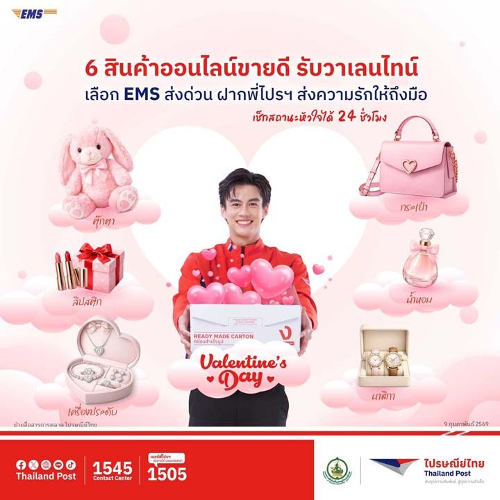 ‘ไปรษณีย์ไทย’เดินหน้าตอกย้ำความเป็นผู้นำด้านโลจิสติกส์ที่เข้าใจผู้ใช้บริการ ภายใต้แนวคิด Parcel Defines Logistics ชูบริการ‘EMS ส่งด่วนทั่วไทย ทั่วโลก’สนับสนุนทุกนิยามความรัก พร้อมเป็นสื่อกลางส่งต่อความรู้สึกระหว่างกัน โดยไม่จำกัดรูปแบบของขวัญและมั่นใจได้ด้วยเครือข่ายที่ครอบคลุมระดับโลก ด้วยมาตรฐานการดูแลระดับมืออาชีพ