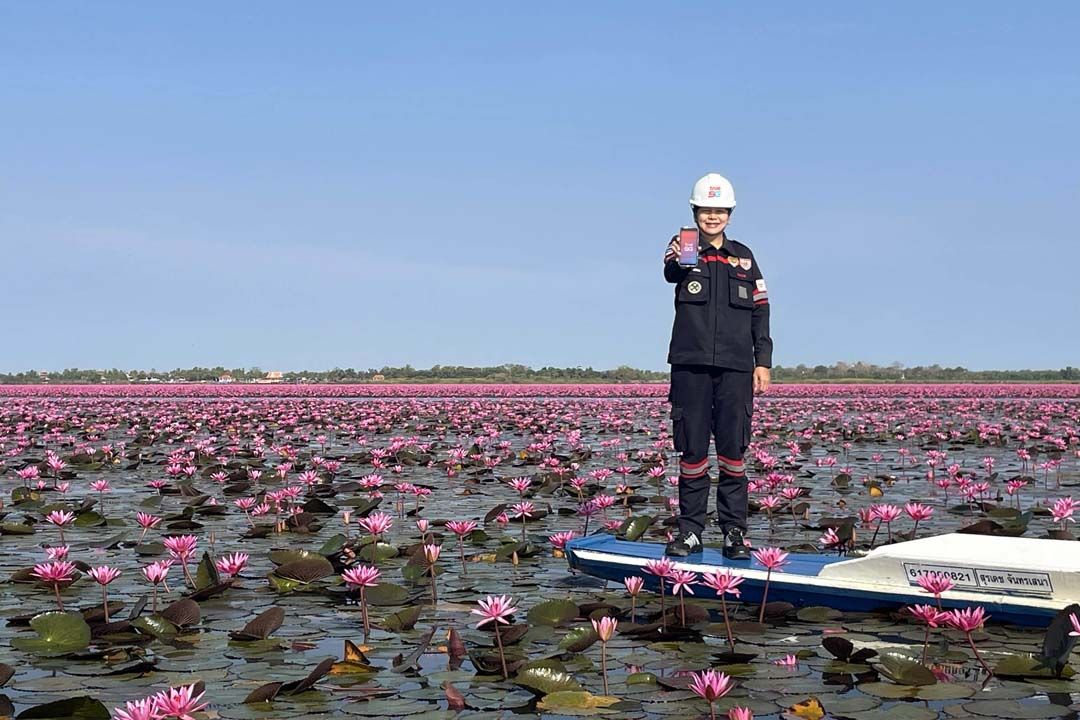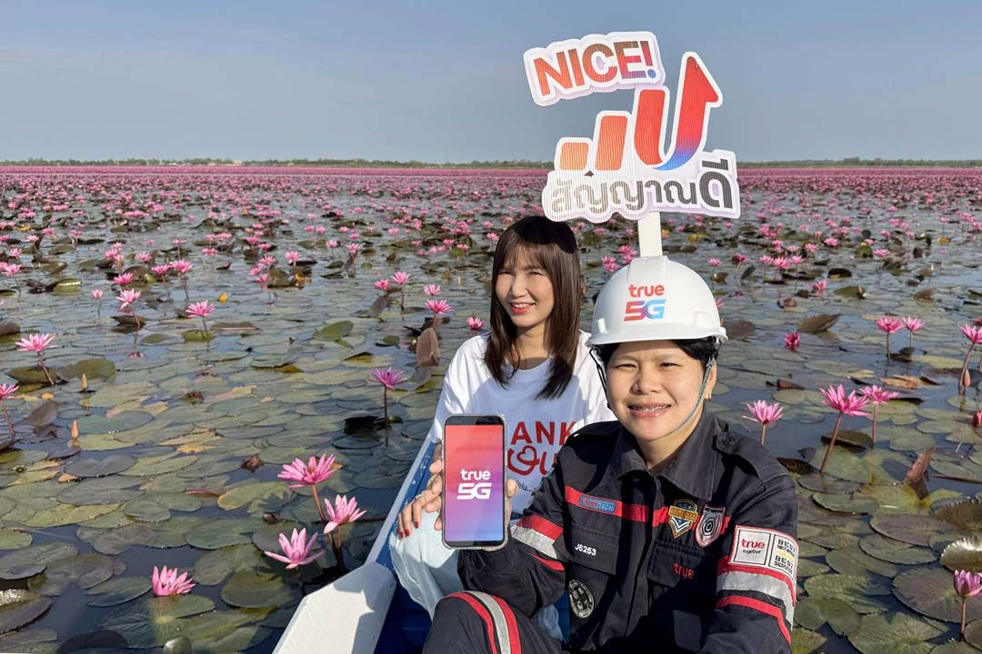 กระแส "ทะเลบัวแดง" ที่อำเภอกุมภวาปี จังหวัดอุดรธานี กำลังได้รับความนิยมอย่างมากจากนักท่องเที่ยวชาวไทย นักท่องเที่ยวต่างชาติ และกลุ่มแฟนคลับของลิซ่า สอดคล้องกับพฤติกรรมการท่องเที่ยวในยุคดิจิทัลที่นิยมใช้มือถือถ่ายภาพ วิดีโอ แชร์คอนเทนต์ ไลฟ์สตรีม ใช้แอปแผนที่นำทาง และเข้าถึงบริการต่างๆ แบบเรียลไทม์ ส่งผลให้การใช้งานดาต้ามือถือเพิ่มขึ้นอย่างต่อเนื่อง ทรู คอร์ปอเรชั่น จึงเห็นความสำคัญและเพิ่มประสิทธิภาพเครือข่าย 5G ในพื้นที่ เพื่อรองรับประสบการณ์การท่องเที่ยว พร้อมสนับสนุนเศรษฐกิจท้องถิ่นและการท่องเที่ยวไทยอย่างยั่งยืน