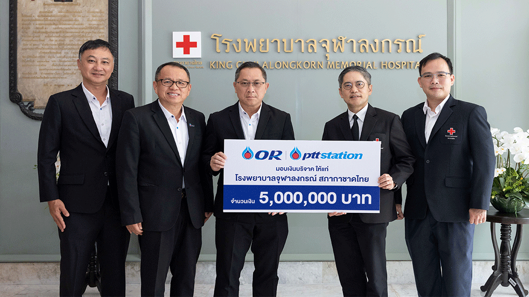 หม่อมหลวงปีกทอง ทองใหญ่ ประธานเจ้าหน้าที่บริหาร บริษัท ปตท. น้ำมันและการค้าปลีก จำกัด (มหาชน) (OR) นายสุชาติ ระมาศ ผู้อำนวยการใหญ่ OR และ นายพิมาน พูลศรี รองประธานเจ้าหน้าที่บริหารด้านธุรกิจค้าปลีกน้ำมัน ร่วมมอบเงินสนับสนุนจำนวน 5,000,000 บาท ให้แก่ รศ.ดร.นพ.จิรุตม์ ศรีรัตนบัลล์ ผู้อำนวยการโรงพยาบาลจุฬาลงกรณ์ สภากาชาดไทย และ อ.นพ.เพชร อลิสานันท์ ผู้ช่วยผู้อำนวยการ โรงพยาบาลจุฬาลงกรณ์ สภากาชาดไทย ด้านการเงิน เพื่อสมทบกองศูนย์รักษาโรคมะเร็งแบบบูรณาการ โรงพยาบาลจุฬาลงกรณ์ สภากาชาดไทย ซึ่งจะช่วยเสริมศักยภาพการดูแลรักษาผู้ป่วยโรคมะเร็งอย่างครบวงจร เพิ่มโอกาสให้ประชาชนเข้าถึงบริการทางการแพทย์ที่ได้มาตรฐานสากล พร้อมสนับสนุนการพัฒนาระบบสาธารณสุขของประเทศ
