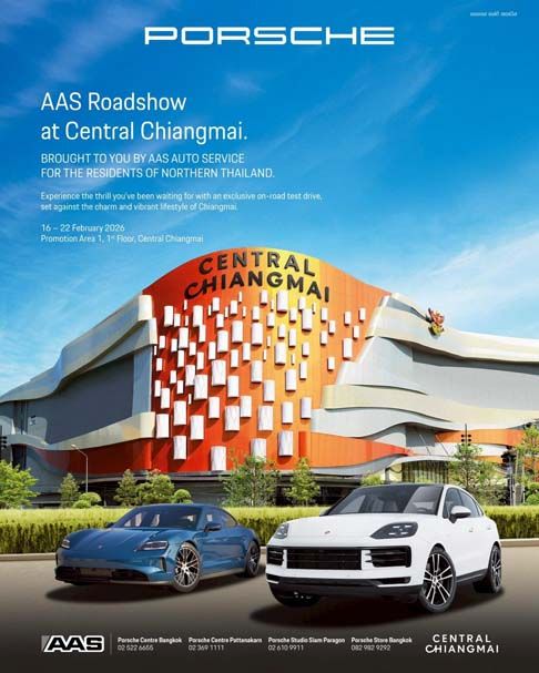 เอเอเอส ออโต้ เซอร์วิส ผู้แทนจำหน่ายรถยนต์ปอร์เช่อย่างเป็นทางการรายแรกในประเทศไทย เดินหน้าสร้างสรรค์ประสบการณ์เหนือระดับ ผ่านกิจกรรม AAS Roadshow at Central Chiangmai ระหว่างวันที่ 16–22 กุมภาพันธ์ 2569 ด้วยการยกทัพยนตรกรรมสปอร์ตปอร์เช่หลากหลายรุ่นสู่จังหวัดเชียงใหม่ ศูนย์กลางไลฟ์สไตล์และวัฒนธรรมแห่งภาคเหนือ เพื่อถ่ายทอดความเร้าใจในทุกมิติให้แก่ผู้หลงใหลในปอร์เช่ ผ่านกิจกรรมพิเศษ 3 รูปแบบ ได้แก่