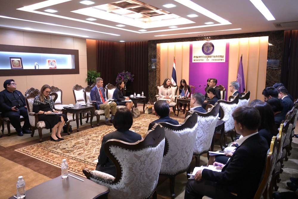 16 กุมภาพันธ์ 2569 นายธนกร วังบุญคงชนะ รัฐมนตรีว่าการกระทรวงอุตสาหกรรม ให้การต้อนรับ นางลุยซา ราแกร์ (Luisa Ragher) เอกอัครราชทูตวิสามัญผู้มีอำนาจเต็มแห่งสหภาพยุโรปประจำประเทศไทยและคณะ ในโอกาสเข้าพบและหารือแนวทางความร่วมมือการขับเคลื่อนด้านอุตสาหกรรมระหว่างประเทศไทยและสหภาพยุโรป โดยมี นายณัฐพล รังสิตพล ปลัดกระทรวงอุตสาหกรรม นางสาวพลอยลภัสร์ สิงห์โตทอง ที่ปรึกษารัฐมนตรีว่าการกระทรวงอุตสาหกรรม นายพลวศุตม์ มหาเอี่ยมศิริ ประธานคณะที่ปรึกษาของรัฐมนตรีว่าการกระทรวงอุตสาหกรรม นายนรุณ สุขสมาน รองผู้อำนวยการสำนักงานเศรษฐกิจอุตสาหกรรม นางสาวอารยา ไสลเพชร รองอธิบดีกรมโรงงานอุตสาหกรรม และเจ้าหน้าที่จากหน่วยงานที่เกี่ยวข้องเข้าร่วมด้วย ณ ห้องรับรอง 1 ชั้น 2 อาคารสำนักงานปลัดกระทรวงอุตสาหกรรม