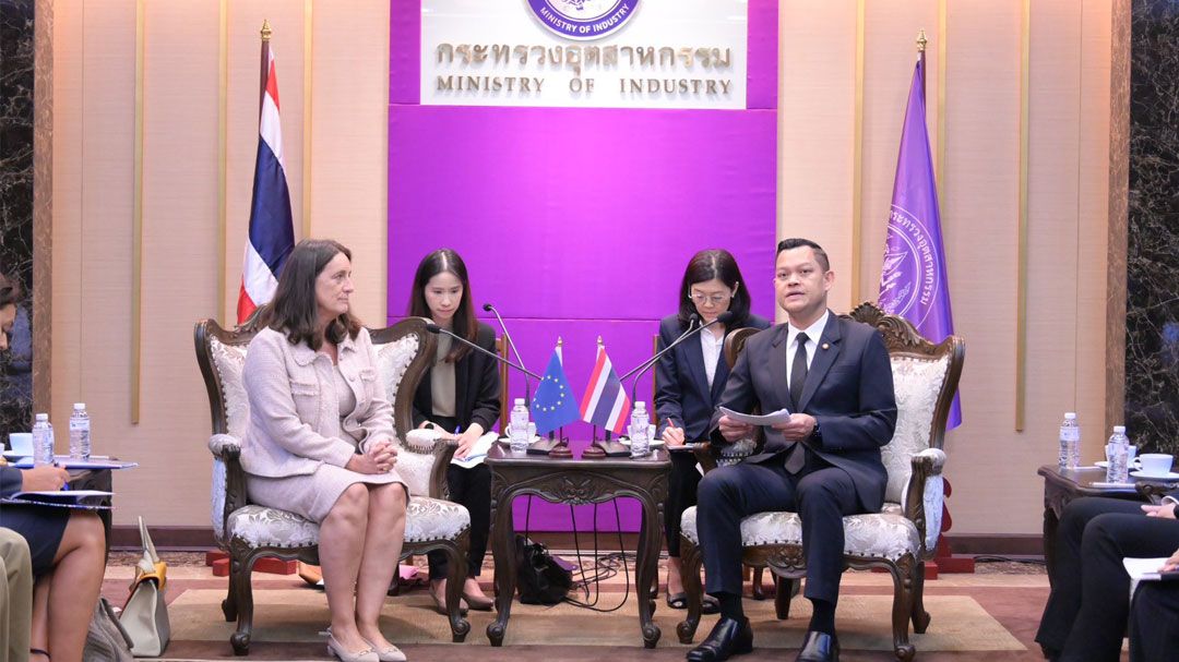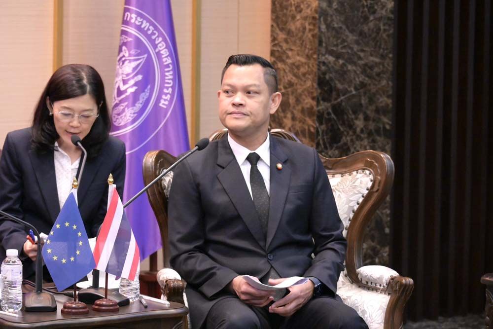 ในการหารือครั้งนี้ นายธนกรฯ ได้เน้นย้ำถึงความสัมพันธ์อันดีระหว่างประเทศไทยและสหภาพยุโรป พร้อมผลักดันแผนการขับเคลื่อนด้านอุตสาหกรรมร่วมกันในอนาคต โดยกล่าวว่า สหภาพยุโรปถือเป็นพันธมิตรทางเศรษฐกิจและคู่ค้าที่สำคัญของประเทศไทย ถึงแม้ว่าในขณะนี้ประเทศไทยจะอยู่ในช่วงของรัฐบาลรักษาการ แต่กระทรวงอุตสาหกรรมยังคงเดินหน้าปฏิบัติหน้าที่อย่างเต็มที่ภายใต้นโยบาย "ฝ่า-ฟัน-ดึง-ดัน" ของกระทรวงอุตสาหกรรม เพื่อมุ่งปรับโครงสร้างเศรษฐกิจอุตสาหกรรมไทยและรักษาความต่อเนื่องของนโยบาย สร้างความมั่นใจสูงสุดแก่นักลงทุนจากยุโรปที่เข้ามาดำเนินธุรกิจในประเทศ สำหรับการขับเคลื่อนความร่วมมือในระยะต่อไป นายธนกรฯ กล่าวว่า กระทรวงอุตสาหกรรมได้ให้ความสำคัญกับเรื่องต่าง ๆ ได้แก่ 1. การเปลี่ยนผ่านสู่เศรษฐกิจสีเขียวและดิจิทัล โดยมุ่งสู่เป้าหมายความเป็นกลางทางคาร์บอนและ Net-Zero Emission ผ่านการส่งเสริมอุตสาหกรรมยานยนต์ไฟฟ้า (EV) นอกจากนี้ ไทยยังยินดีที่จะเสริมสร้างความร่วมมือในด้านกฎระเบียบสำคัญ เช่น มาตรการปรับคาร์บอนก่อนเข้าพรมแดน (CBAM) และกฎระเบียบการขนส่งของเสีย (RSW) เพื่อช่วยให้ภาคอุตสาหกรรมไทยปรับตัวได้สอดคล้องกับมาตรฐานสิ่งแวดล้อมของยุโรป และลดผลกระทบต่อการค้าระหว่างกัน 2. ความร่วมมือด้านการค้าและการสนับสนุนการเจรจาความตกลงการค้าเสรี (Thai-EU FTA) ให้บรรลุผลสำเร็จตามเป้าหมายภายในกลางปี 2569 โดยให้ความสำคัญกับการสร้างสภาพแวดล้อมทางการค้าที่เป็นธรรม โปร่งใส และลดอุปสรรคทางเทคนิคต่อการค้า เพื่อเปิดโอกาสใหม่ๆ และเสริมสร้างความเชื่อมโยงในห่วงโซ่อุปทานร่วมกัน และ 3. การแสวงหาโอกาสภายใต้โครงการ Global Gateway ของสหภาพยุโรป ที่จะช่วยดึงดูดการลงทุนที่มีคุณภาพในอุตสาหกรรมเป้าหมาย